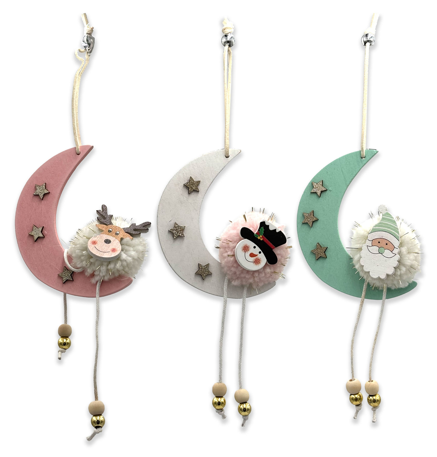 COLGANTE NAVIDEÑO MADERA MEDIA LUNA 8X24CM POMPON 3COLOR 3MODELO 29597 Q300M12