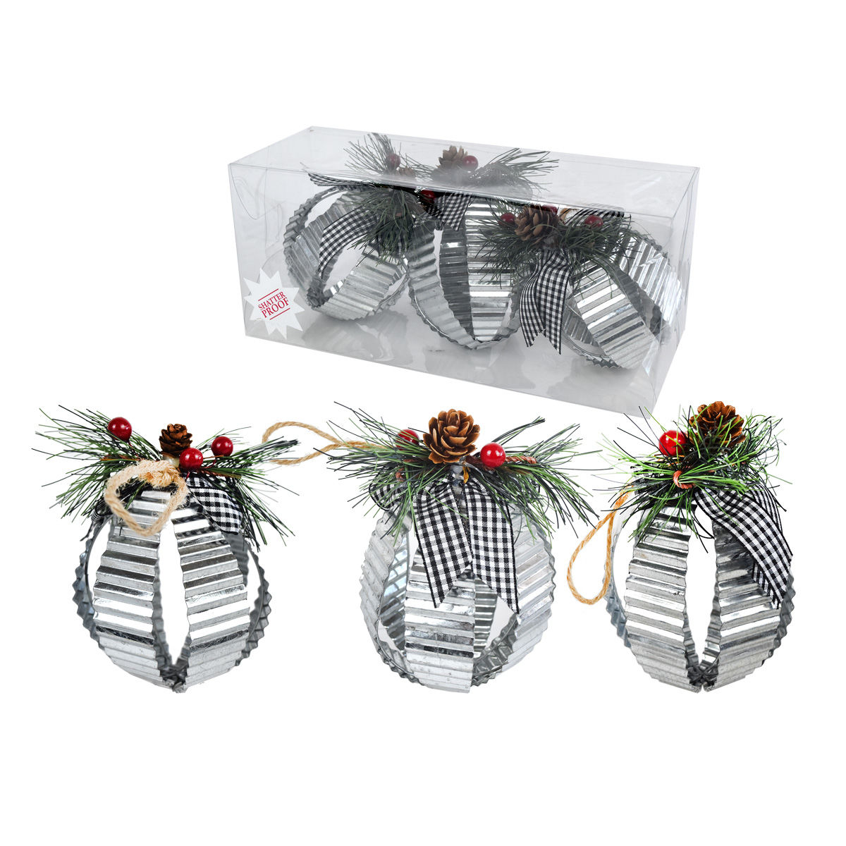 ESFERA 8CM X3UDS CALADA ADORNO NAVIDEÑO METAL CAJA PVC 27.5X11.5X9.5CM 28571 Q6