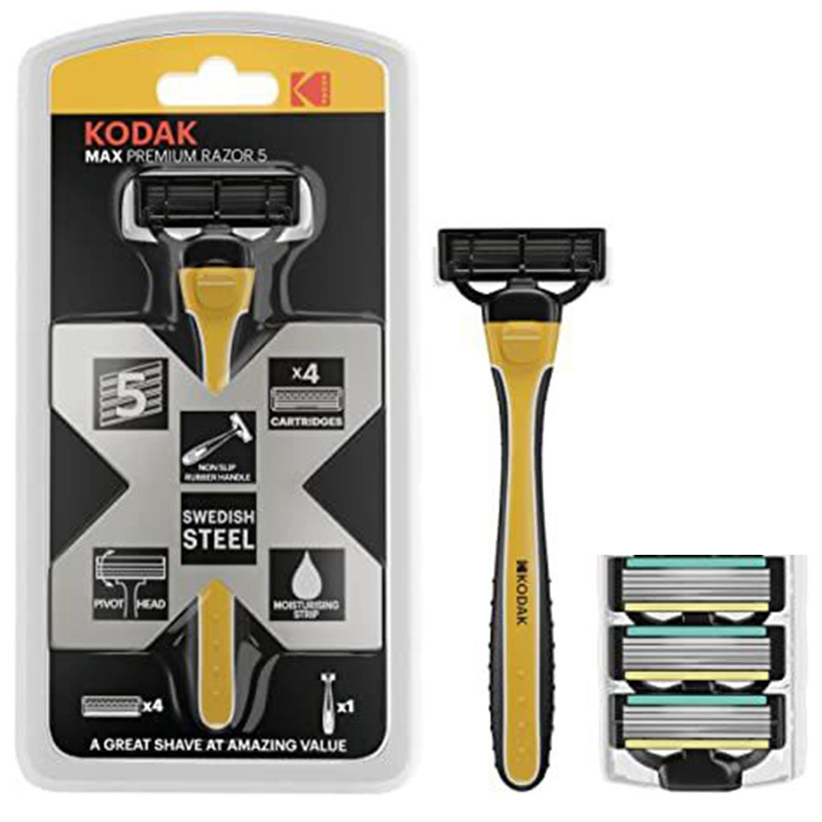 AFEITADORA PREMIUM KODAK MAX 5HOJAS MANGO GOMA 4CARTUCHOS RECAMB 30422032 Q48M12