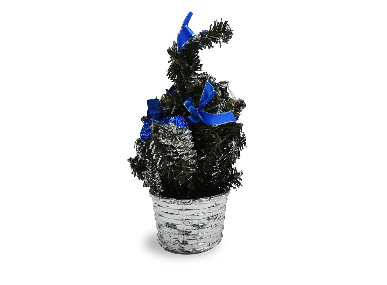ARBOL DECORADO 20CM P/ESCRITORIO C/MOÑAS ESFERAS Y GLITTER 5.5CM BASE 26646 Q144