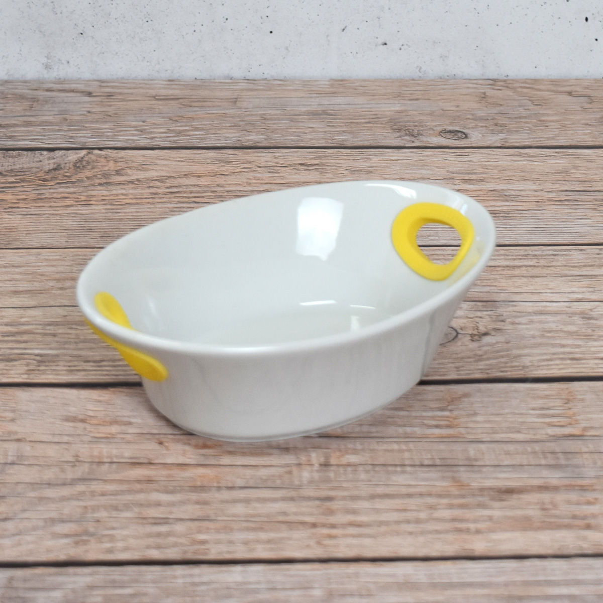 BOWL CERAMICA BLANCA OVAL C/ASAS SILICONA 17X12X5CM ZS020 Q48