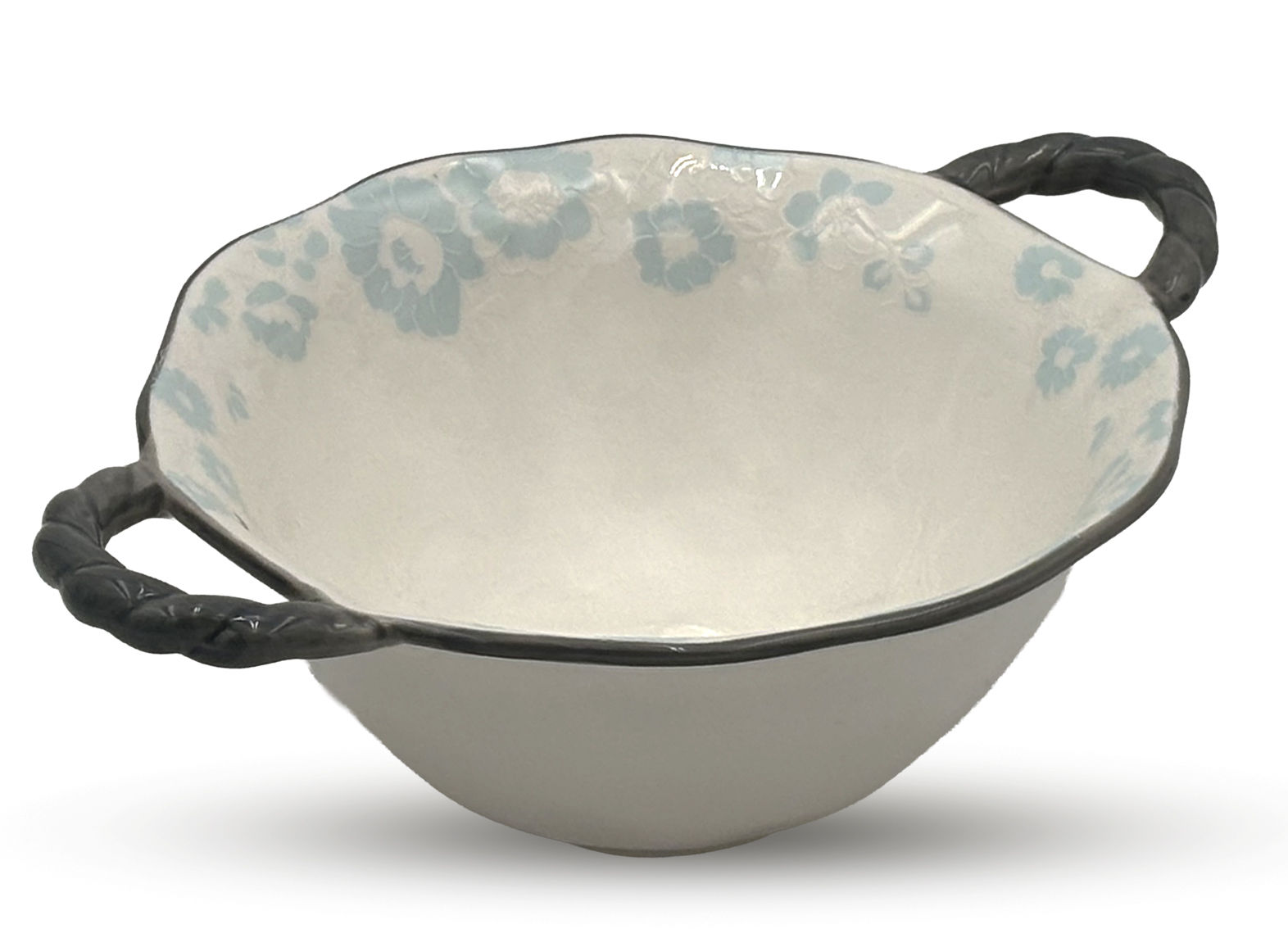 BOWL CERAMICA BCA C/DISEÑO ASAS TORNEADAS LABRADO FLORES 17X7.5CM XH-44 Q32