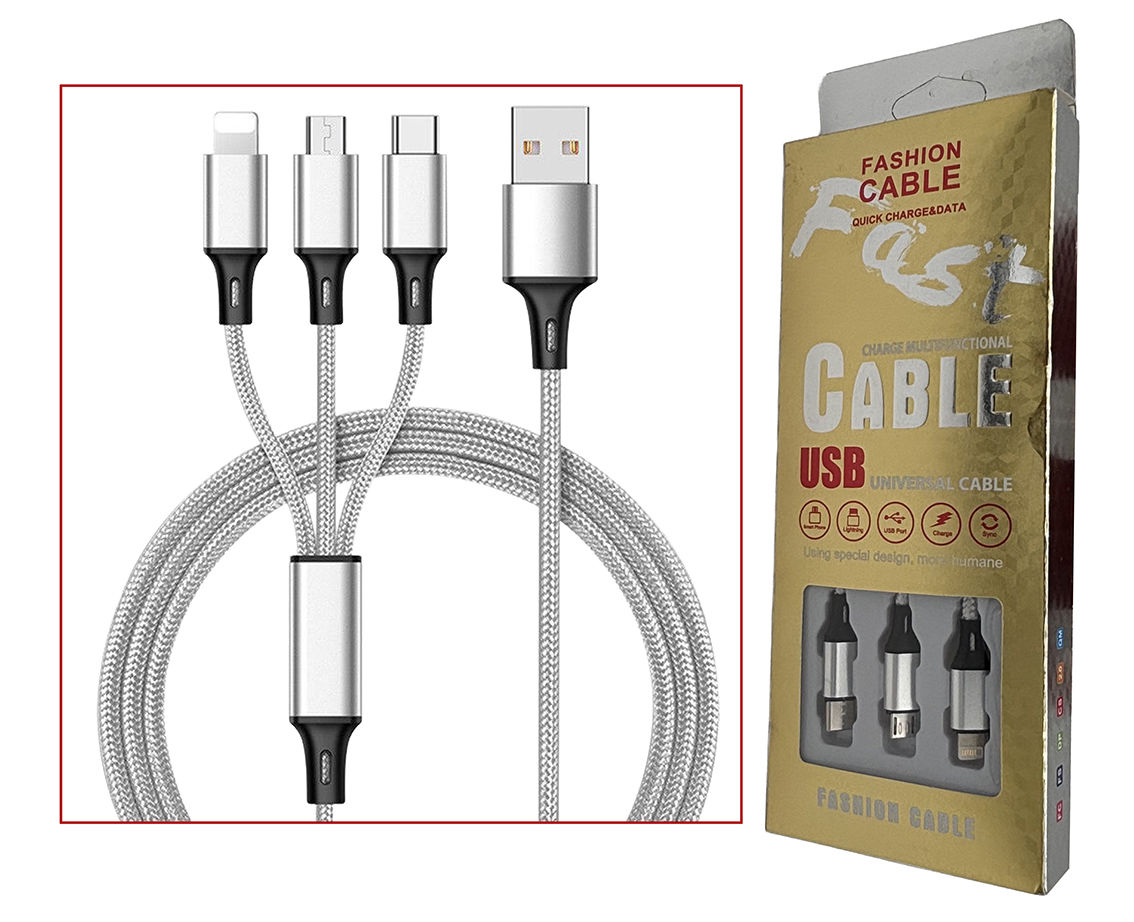 CABLE USB MULTIFUNCION P/CELULAR 1.2MT 3 ADAPTADORES 34880 Q120