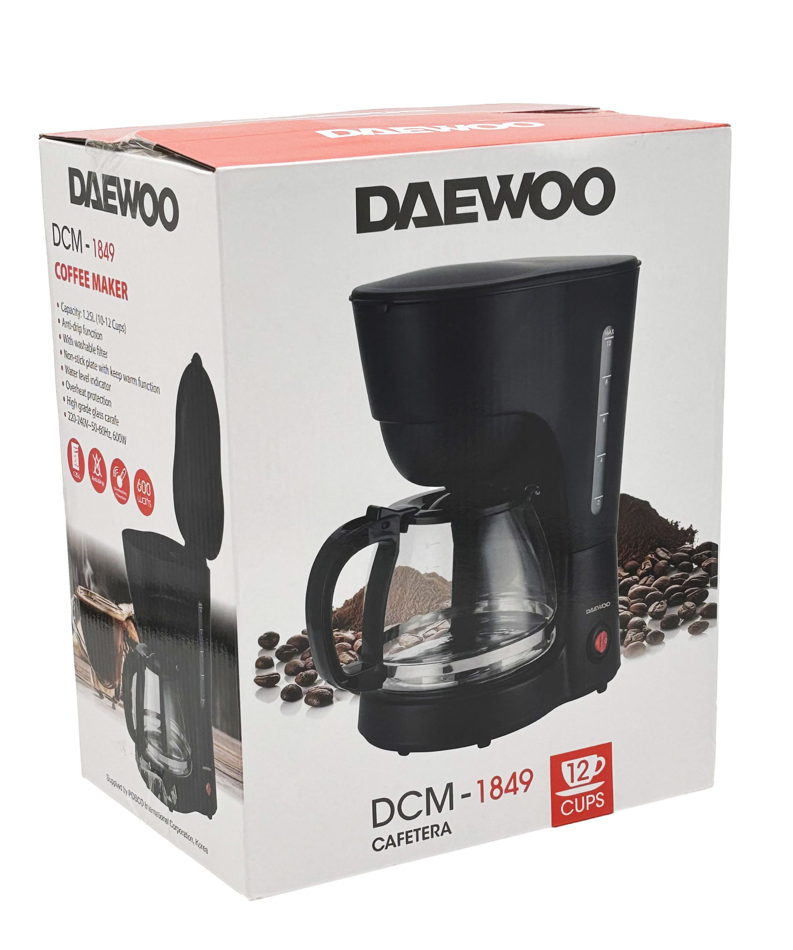 CAFETERA ELECTRICA DAEWOO 1.25LT 10-12 TAZAS FILTRO LAVABLE 600W DCM-1849 Q6