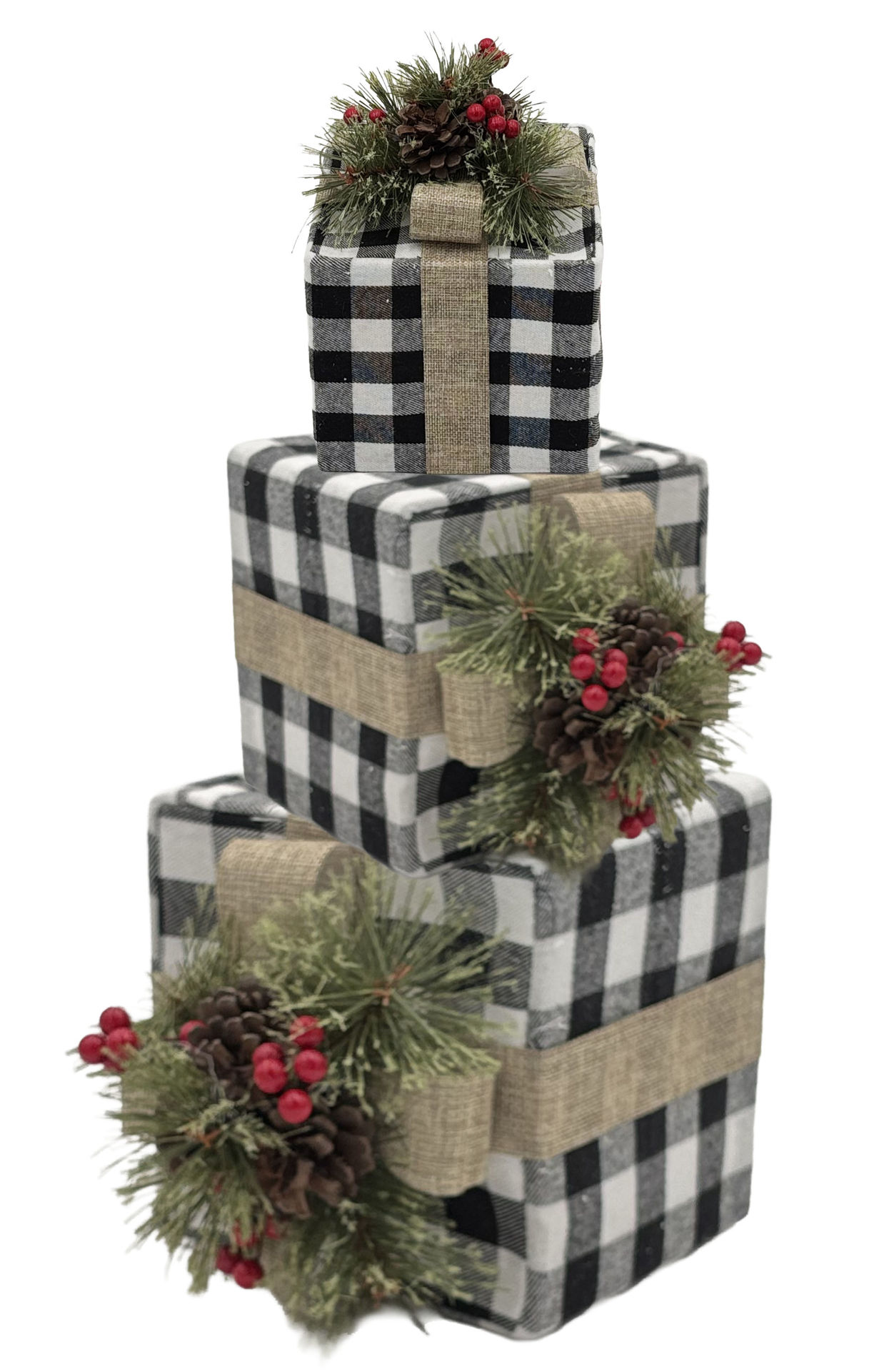 CAJA REGALO SET X3PCS TELA Y METAL CUADRILLE APLIQUE NAVIDEÑO PIÑAS 34657 Q8