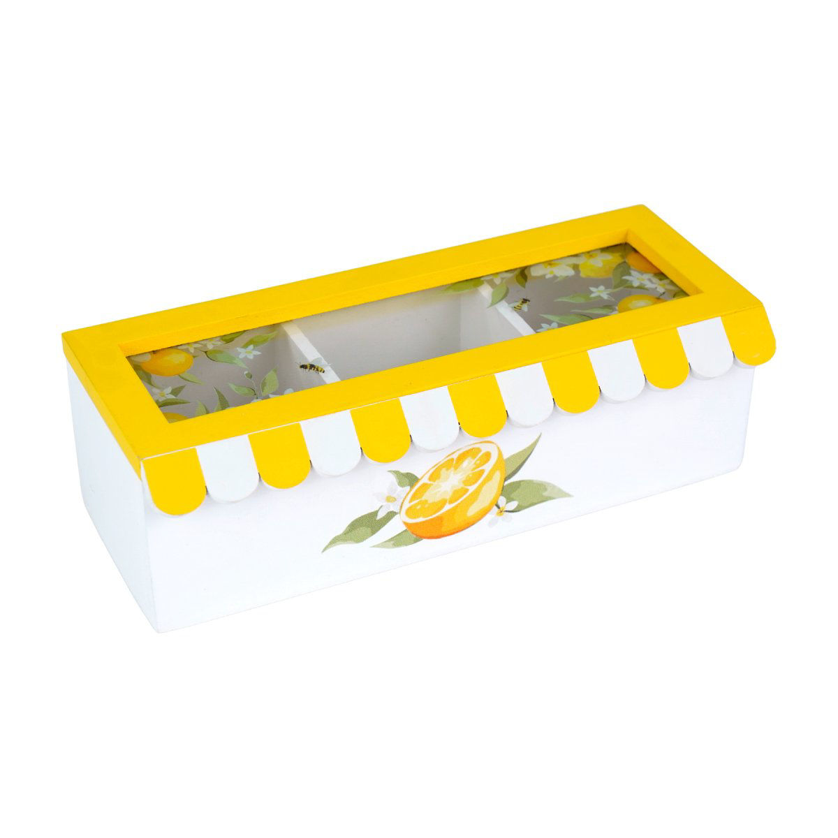 CAJA DE TE MADERA 3 DIVISIONES TAPA VIDRIO LIMONES 22X8X7CM 358GR 32732 Q36
