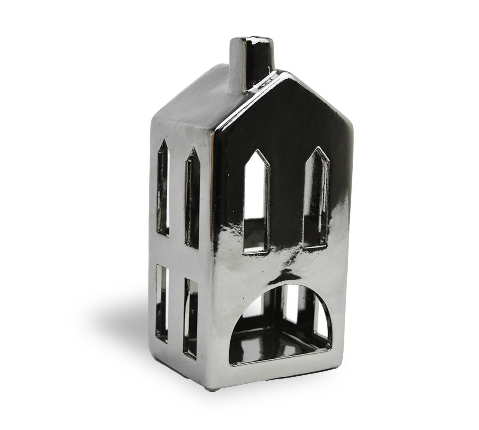 CANDELABRO CERAMICA CASITA METALIZADA 8.5X7X17.5CM 25988