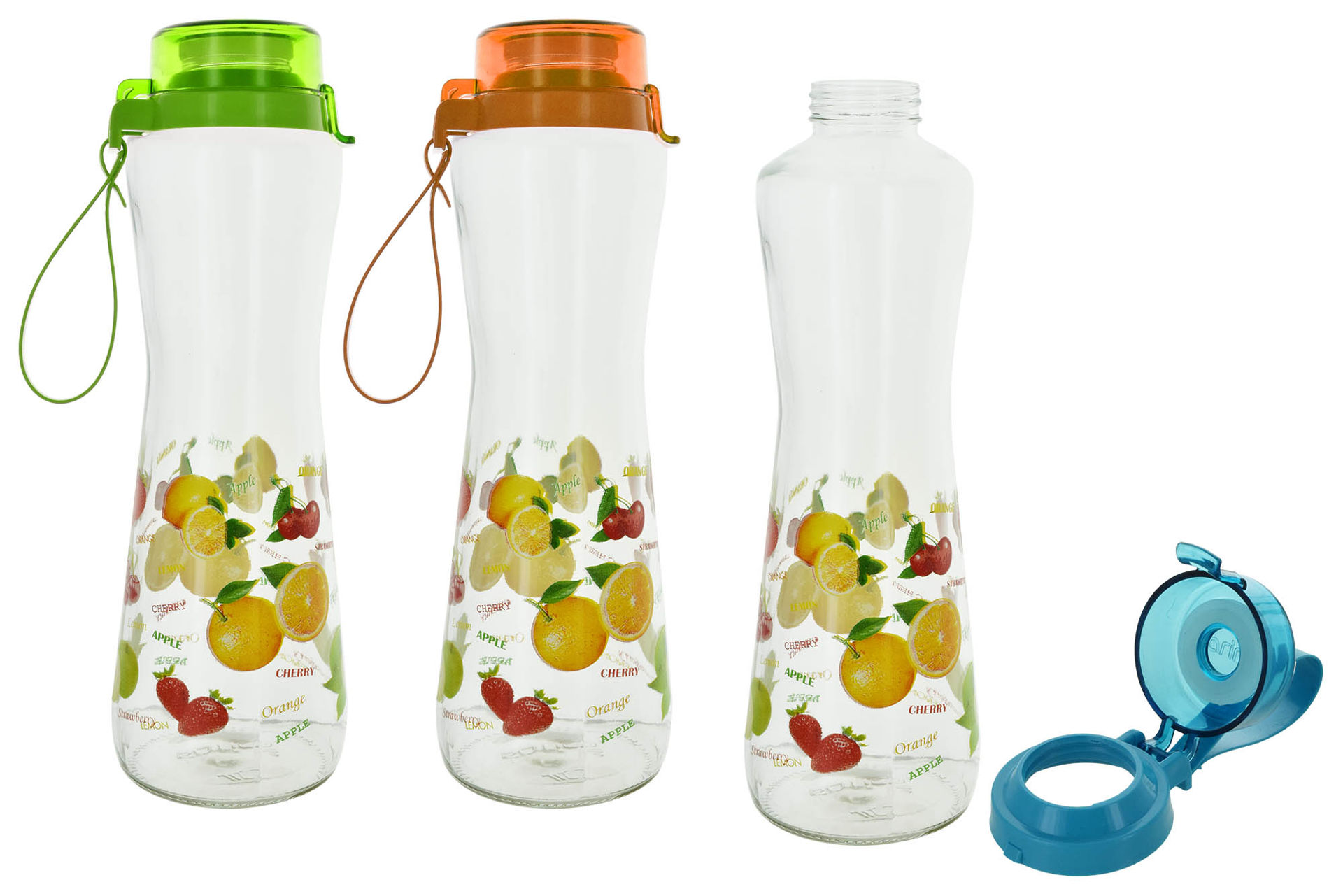 CANTIMPLORA SARINA 750ML VIDRIO DECORADA FRUTAS ASA SILICONA S-744 Q12