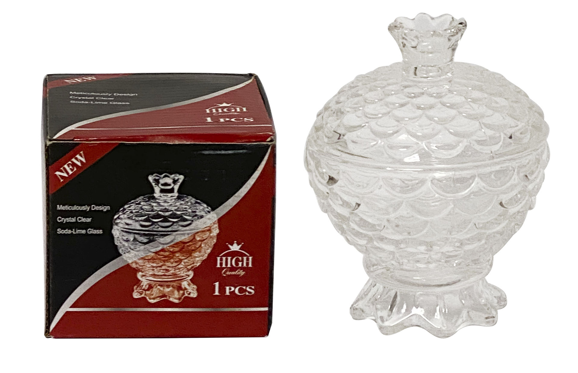 CARAMELERA VIDRIO LABRADO T/PIÑA C/TAPA Y PIE 9X11.5CM 24779 Q48