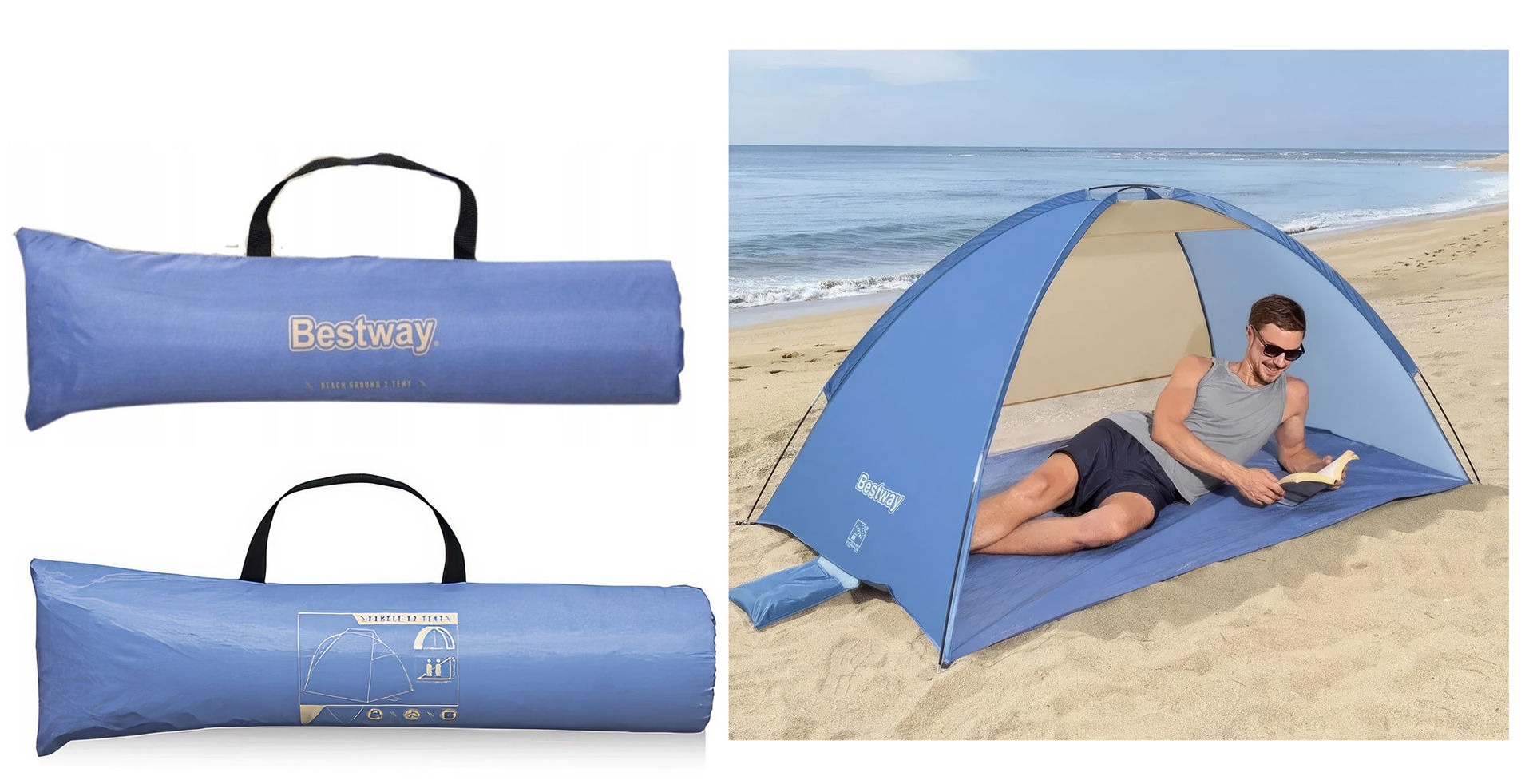 CARPA ABIERTA P/PLAYA 2P 200X120X95CM PROTECCION UV BESTWAY 68105 Q16