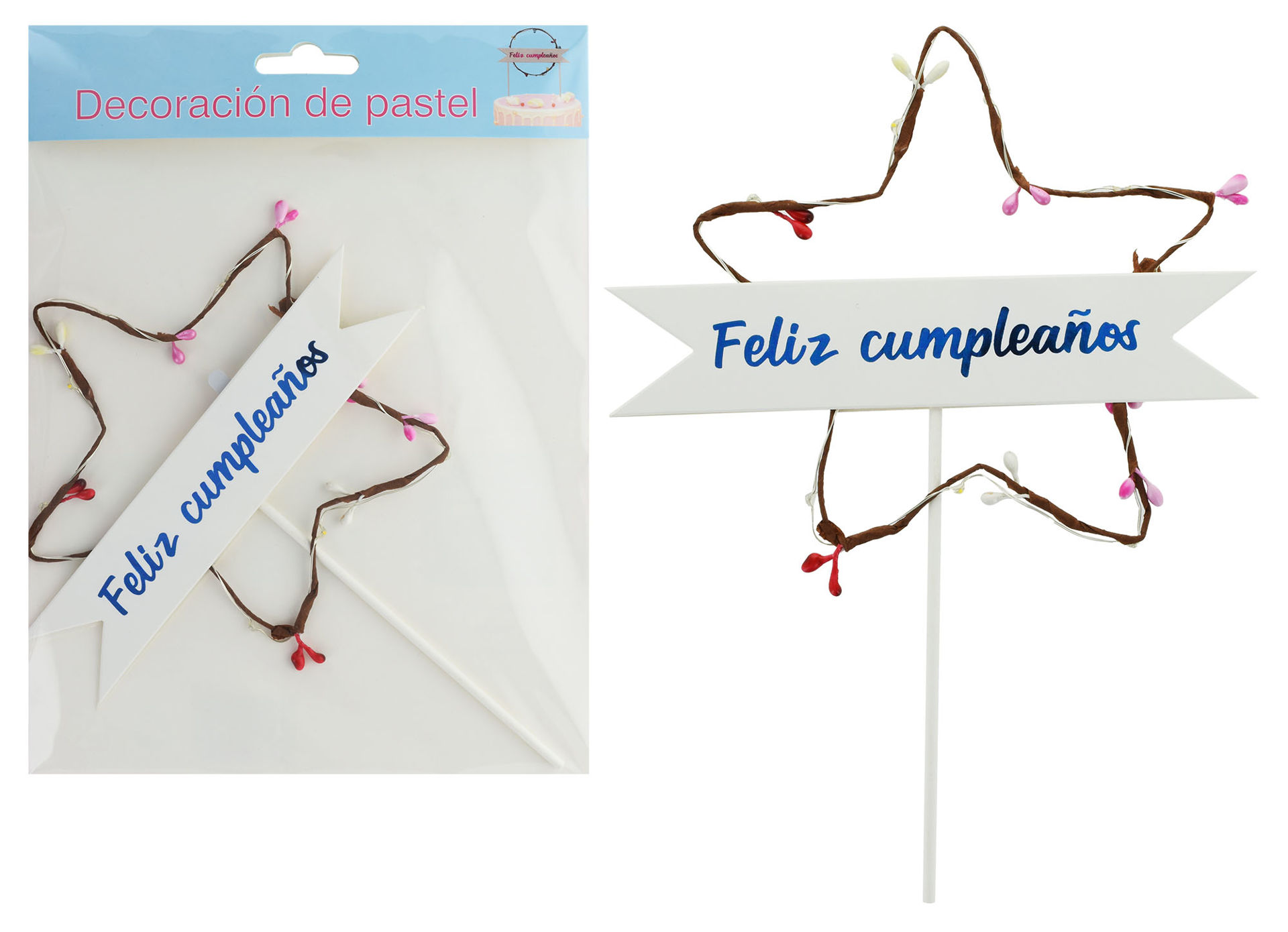 CARTEL P/TORTA C/LUZ FELIZ CUMPLEAÑOS F/ESTRELLA PILA 22885 Q144 M12