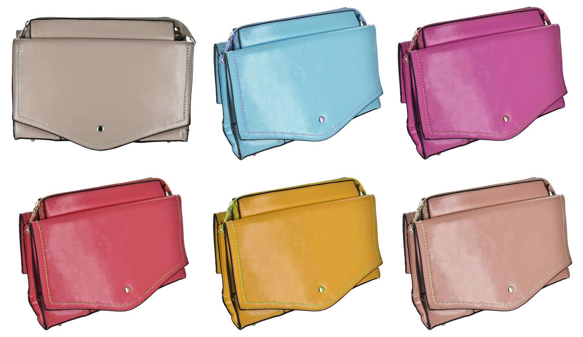 CARTERA DAMA PU TIPO SOBRE CON BROCHE AMBOS LADOS + CIERRE 29X17X22CM 17808 Q24