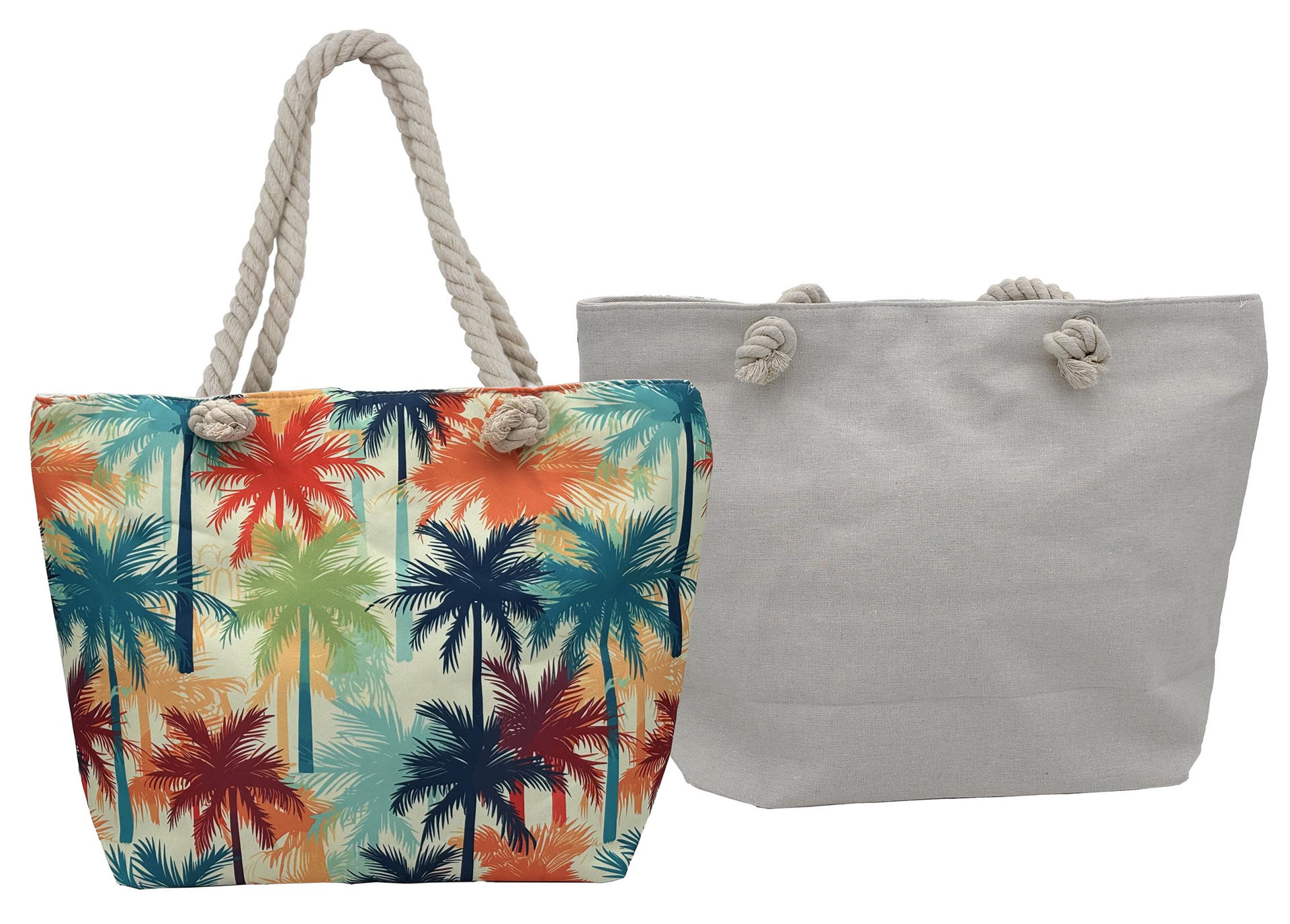 BOLSO PLAYA ASA CUERDA DISEÑO PALMERAS MULTICOLOR 53X37X15CM 32857 Q60