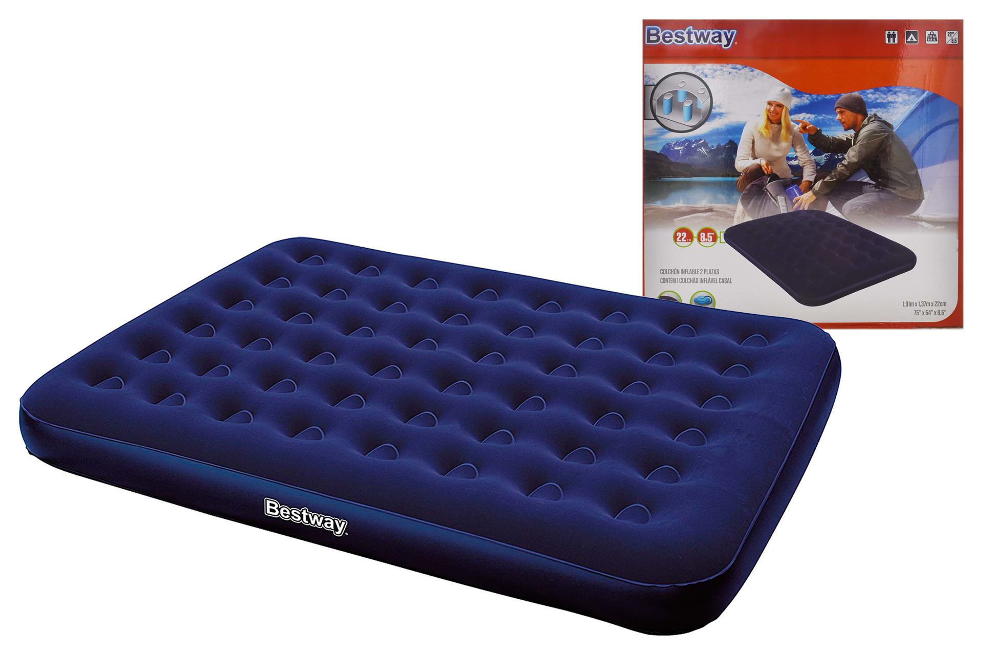 COLCHON INFLABLE GAMUZA 2PZAS AZUL BESTWAY 191X137X22CM EN CAJA 67002N Q4