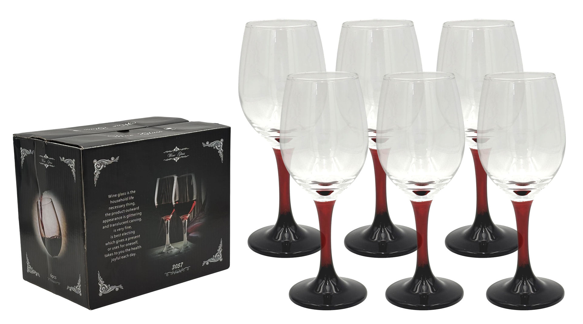 COPA VINO SET X6PCS VIDRIO PIE COLOR 7X20CM CAJA 35182 Q8
