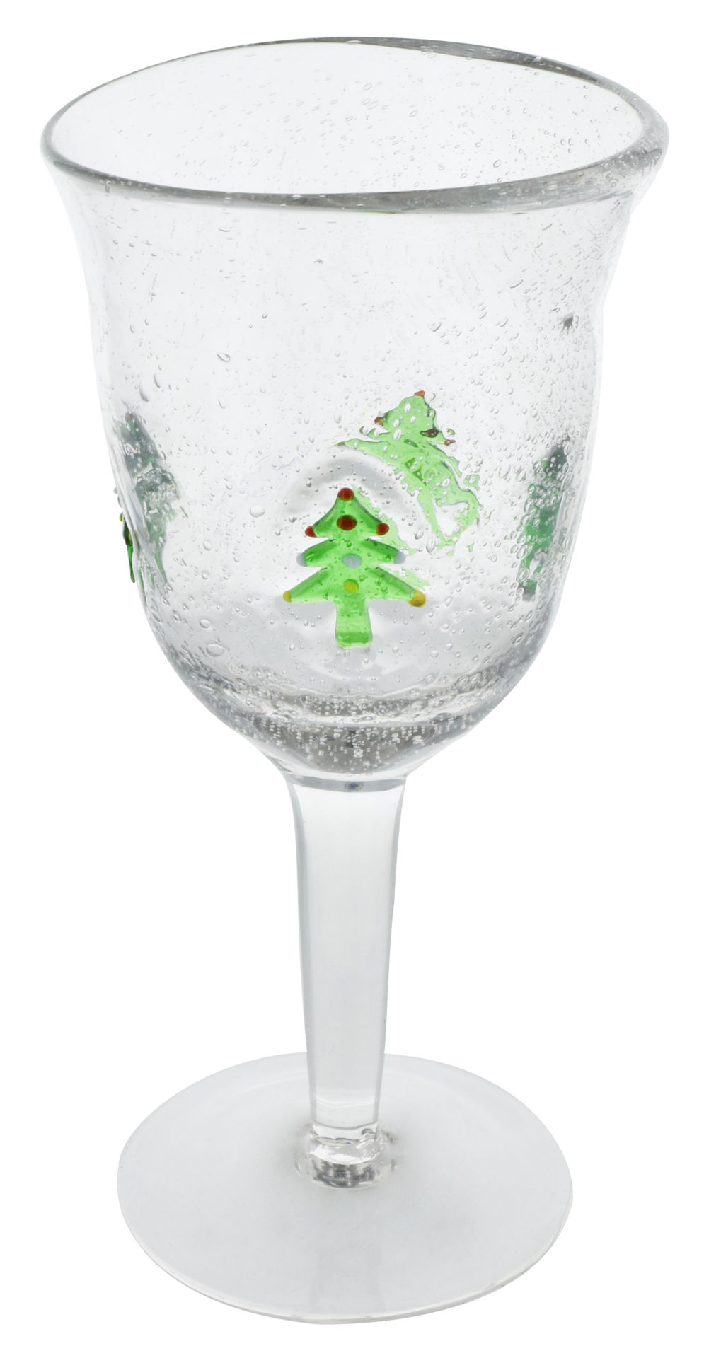 COPA VINO VIDRIO BURBUJA NAVIDEÑA 300ML 9.8X18CM 18969 Q48