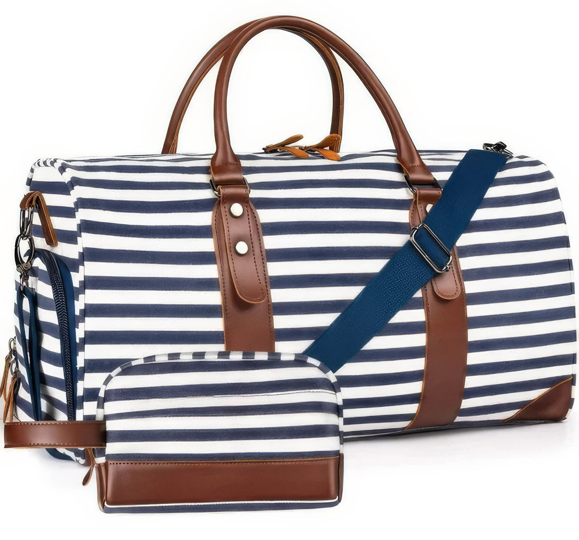 BOLSO VIAJE RAYADO BCO-AZUL 52X29X29CM + COSMETIQUERO 12X21X10CM 34432 Q16