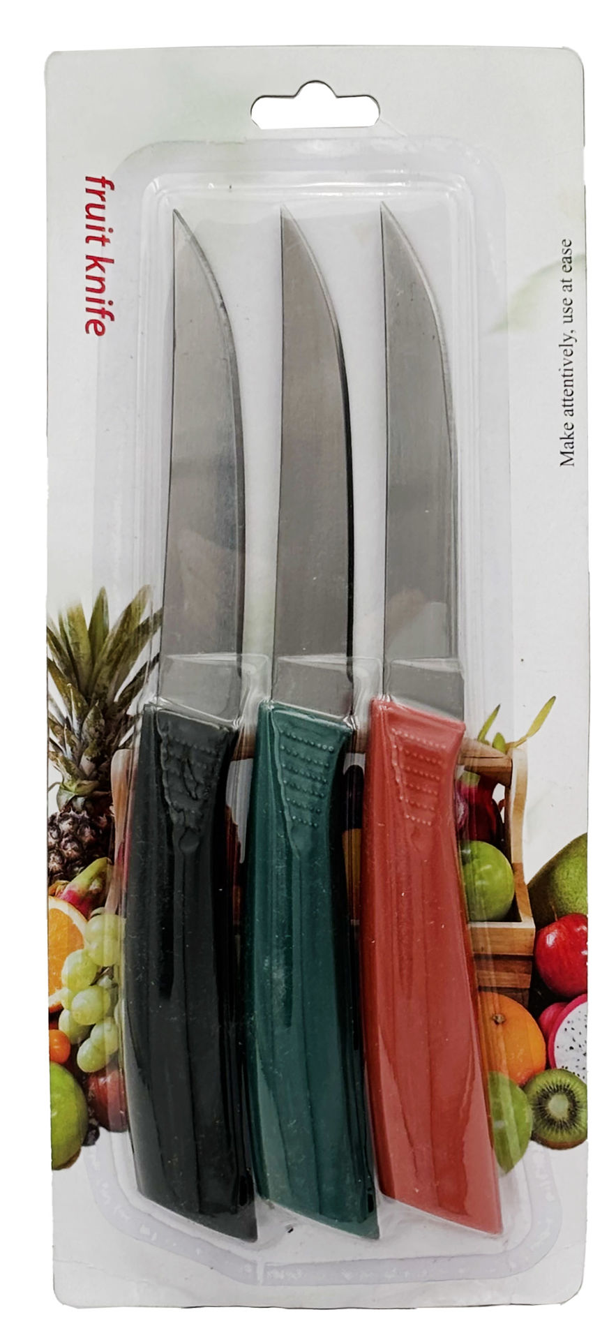 CUCHILLO X3PCS 22CM MANGO PLASTICO COLORES BLISTER 34295 Q120