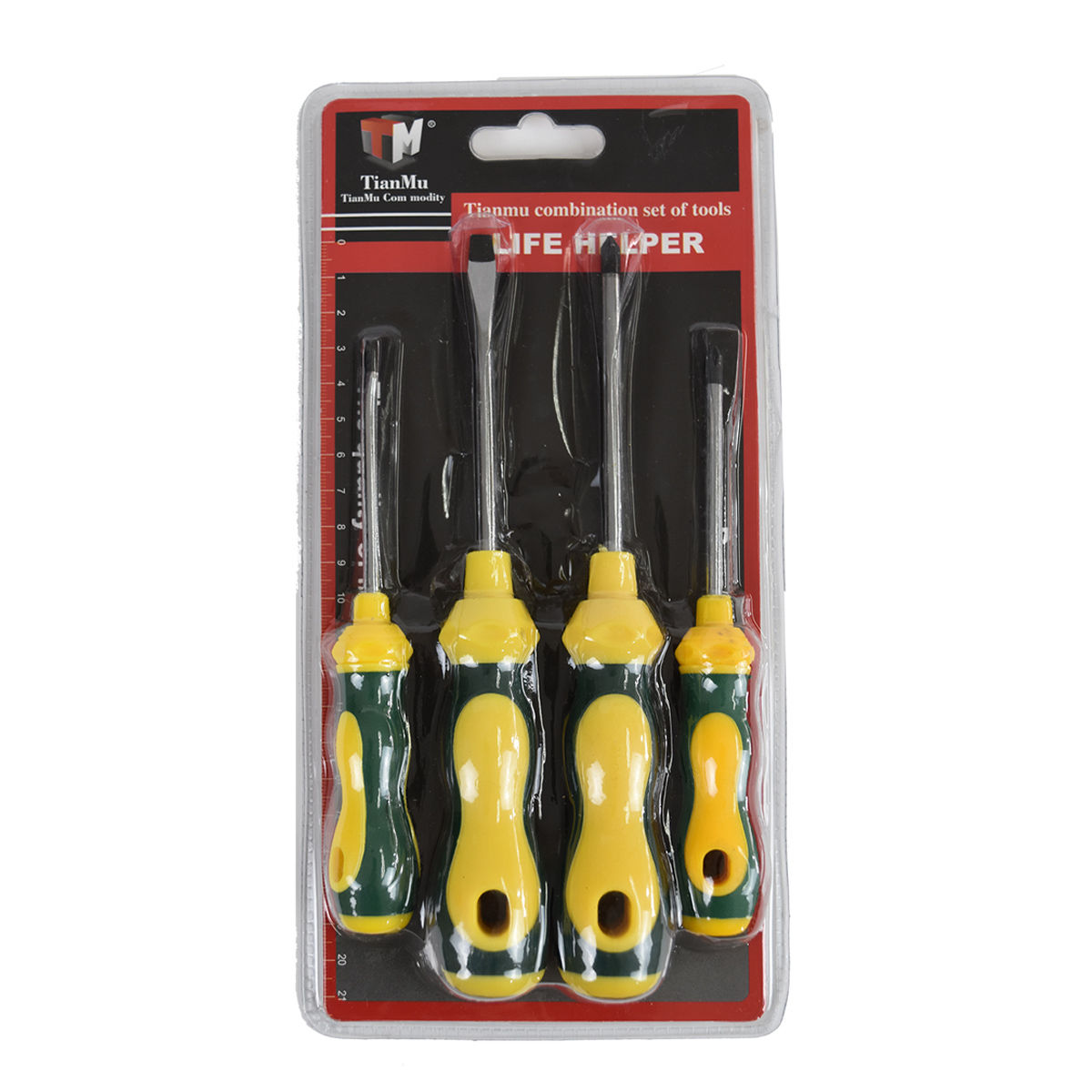 DESTORNILLADOR SET X4PCS MANGO VERDE/AMARILLO BLISTER 26.8X13.1X13CM 30869 Q60