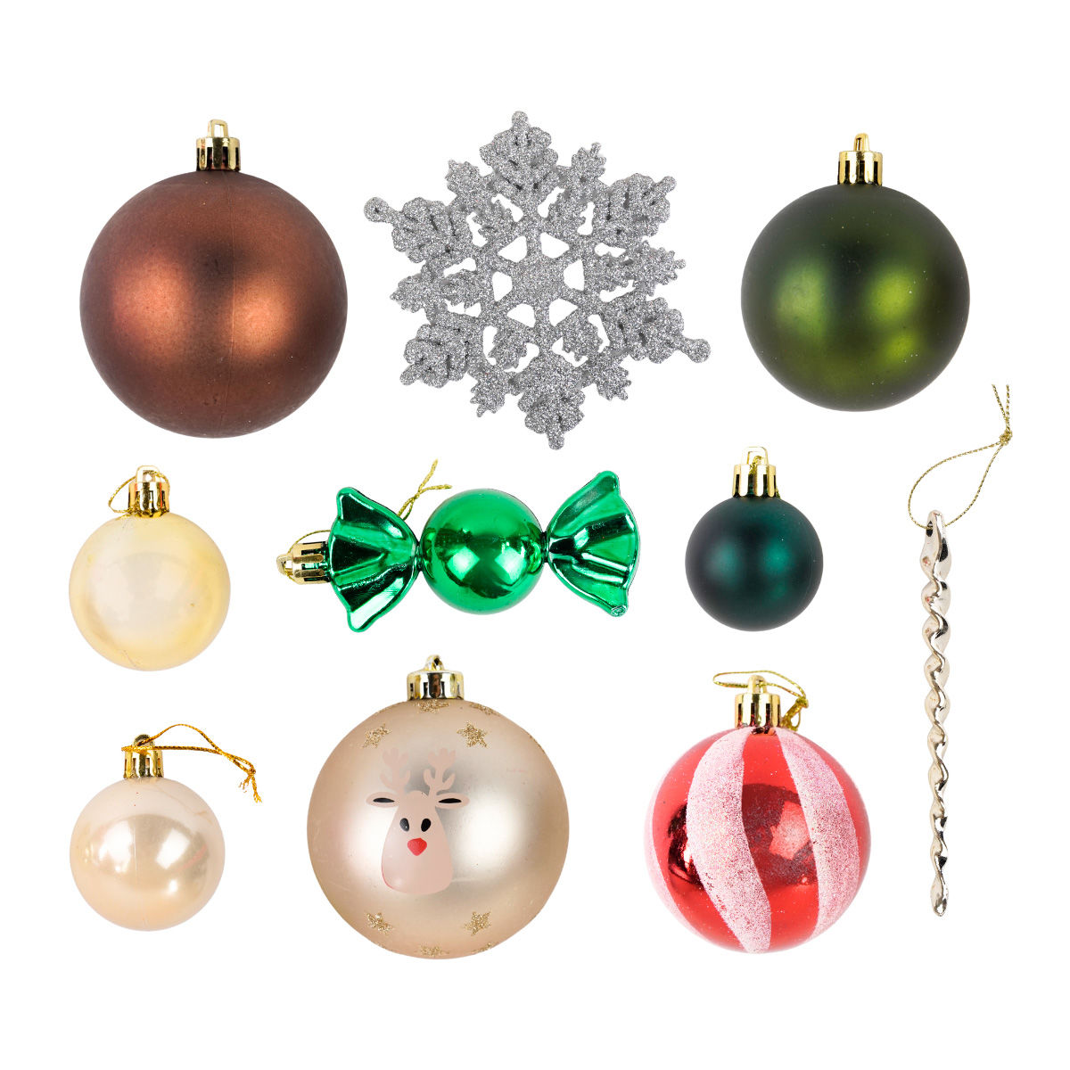 ESFERA DECORADA 6CM X 6PCS PINOS Y COPOS CAJA PVC 28458 Q120M1
