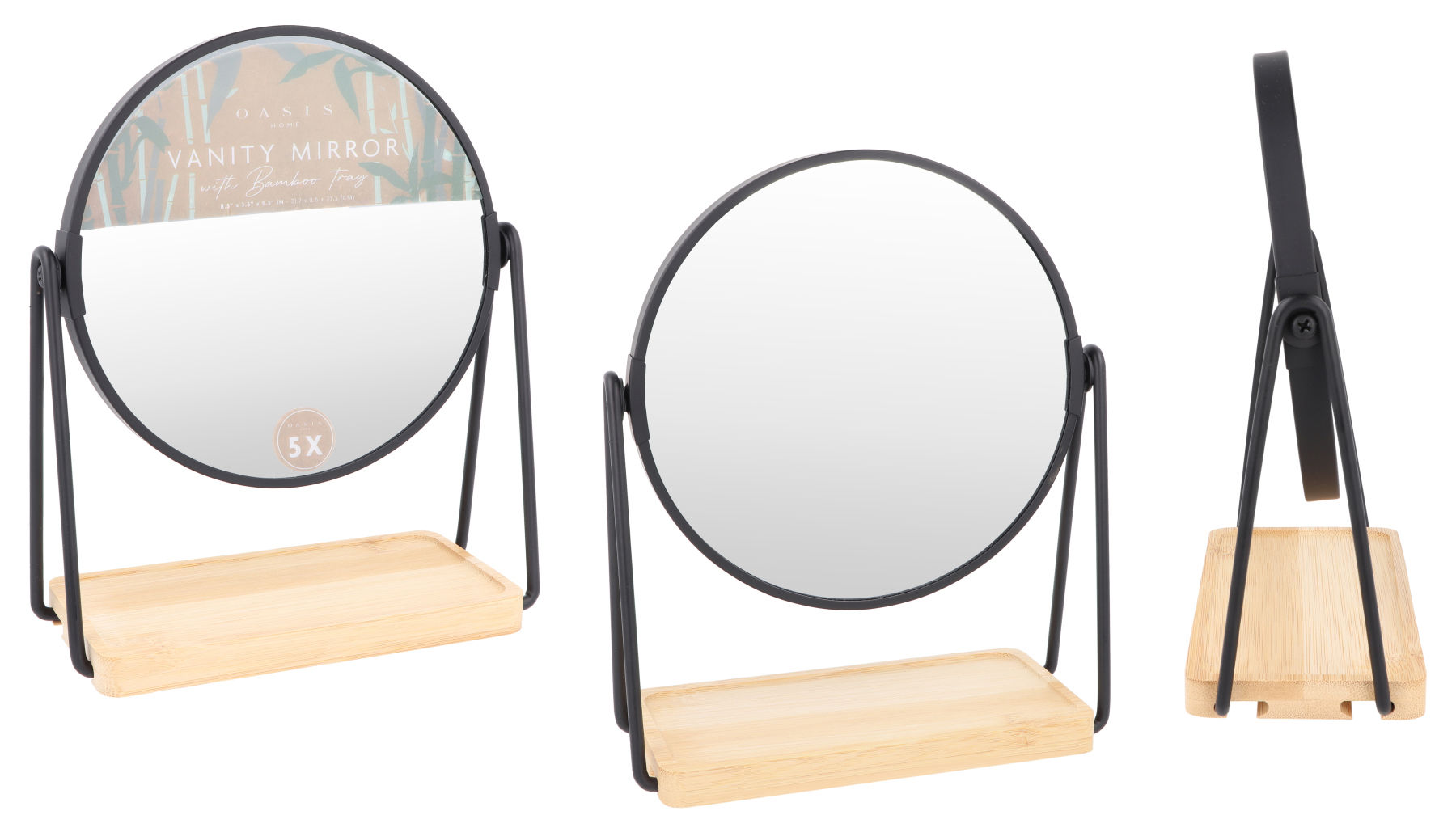 ESPEJO DOBLE C/AUMENTOX5 ESTRUCTURA METAL BCO/NEGRO BASE MADERA 17X20 30060 Q6M1 Medidas: 17CM X 20CM