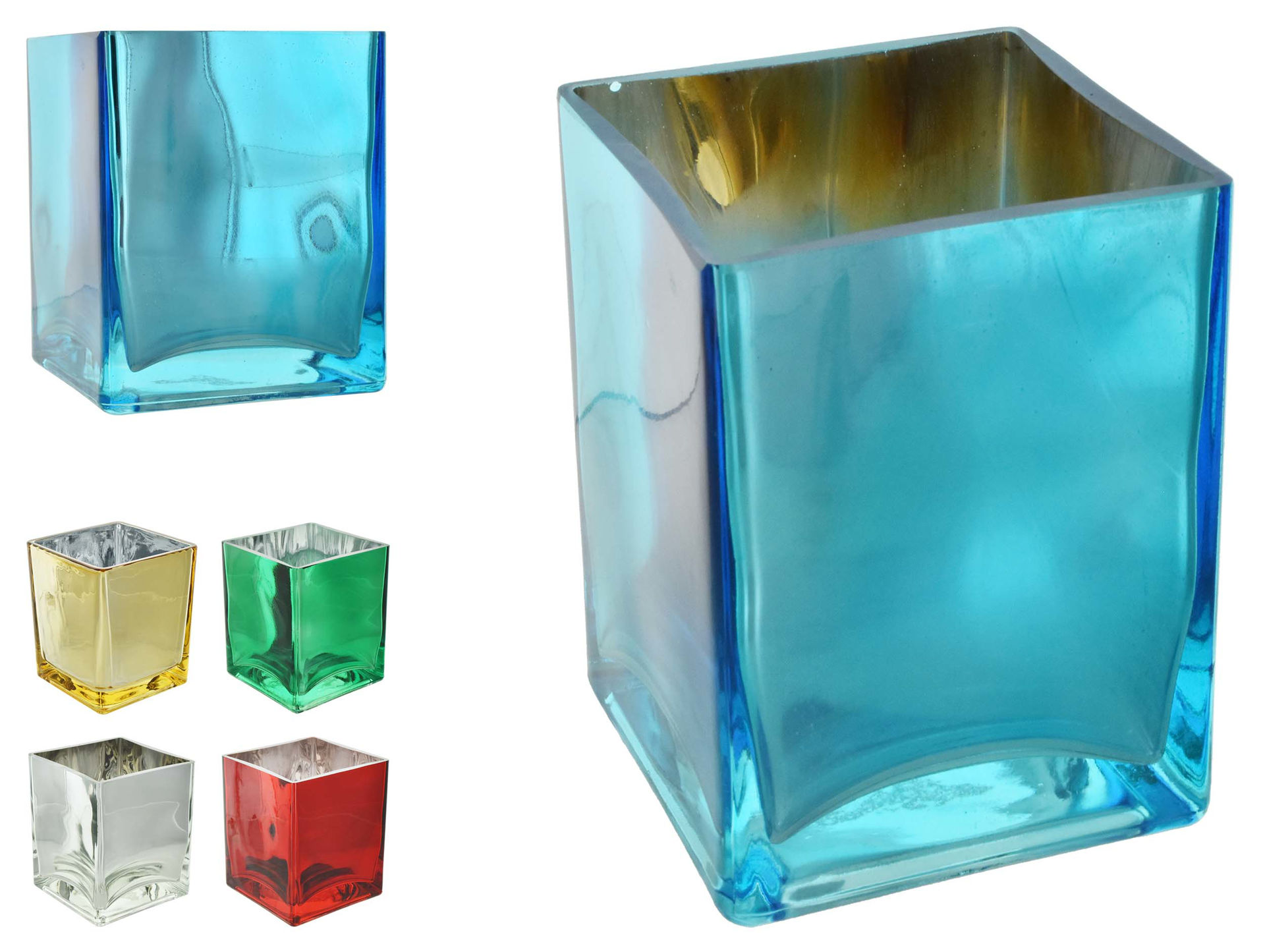 FLORERO VIDRIO CUADRADO COLOR METALIZADO 10X10X11.CM 22533 Q12 M6
