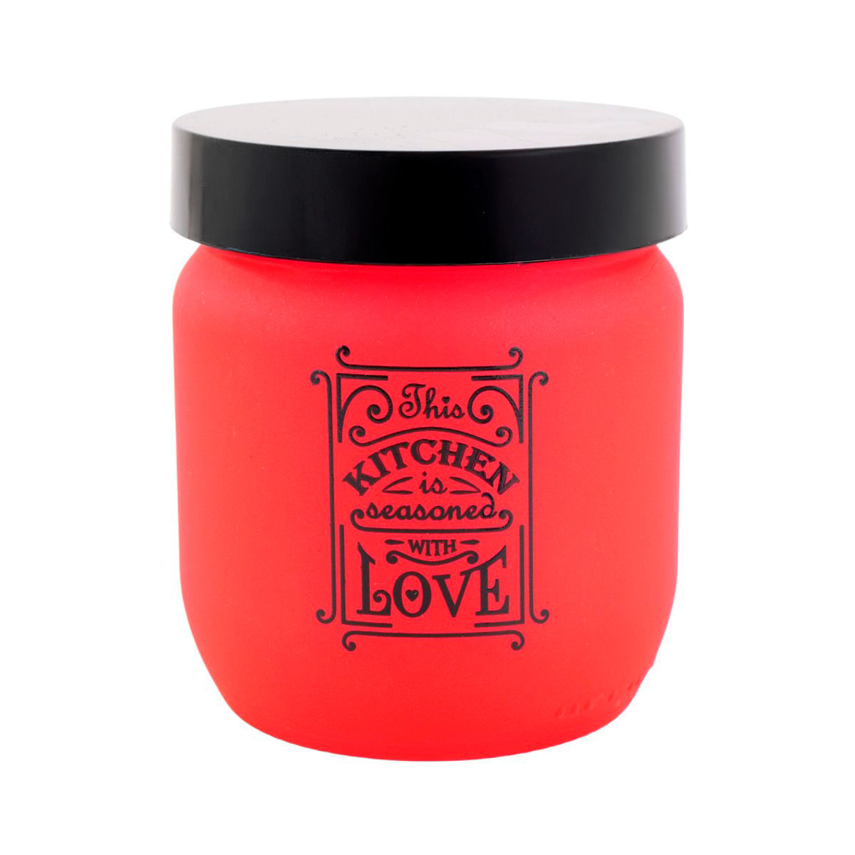 FRASCO HEREVIN VIDRIO 425CC ROJO DECORADO TAPA NEGRA 146357-121 Q24M12