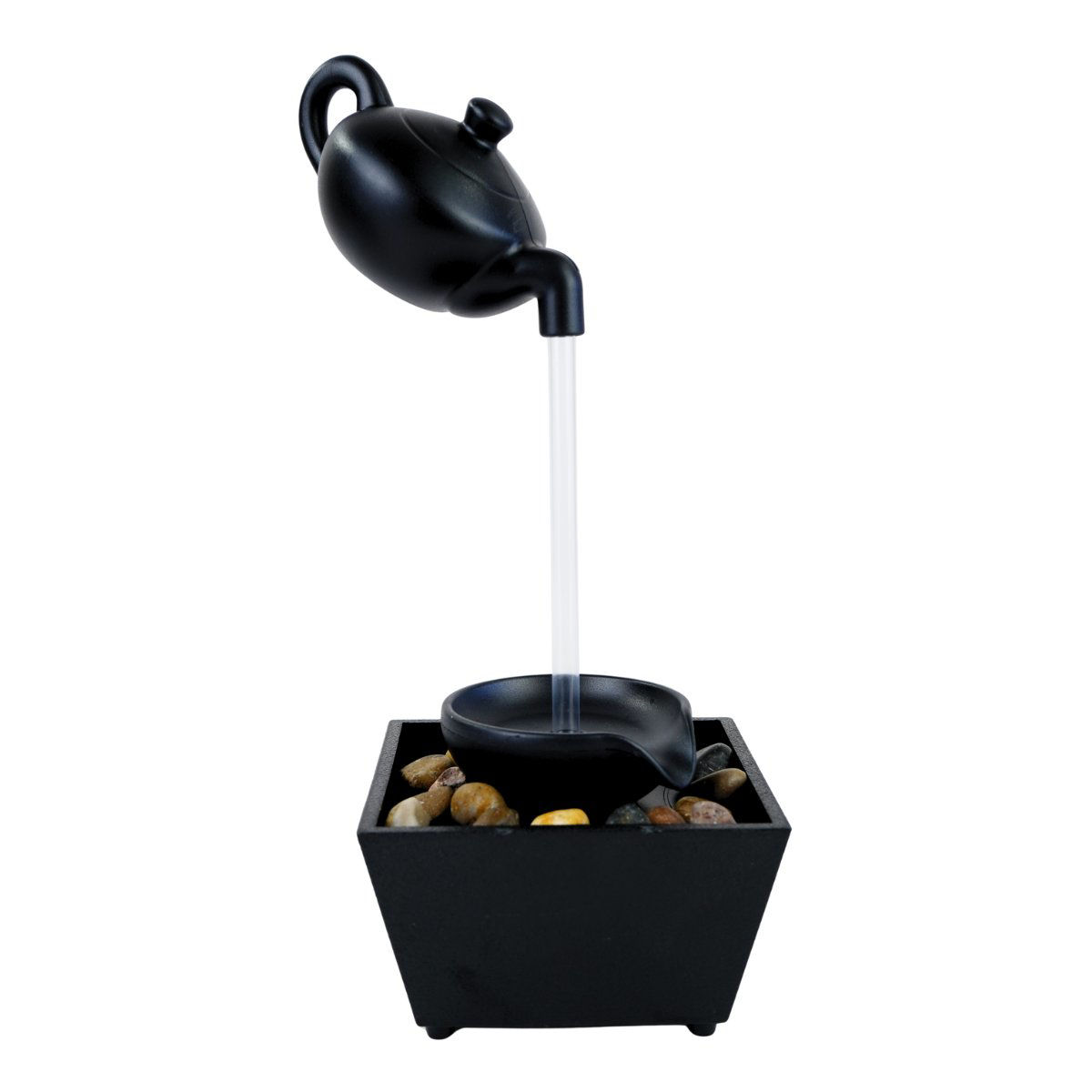 FUENTE AGUA C/LUZ LED TETERA Y PIEDRAS A PILA O USB 11.5X11.5X28CM 34871 Q30