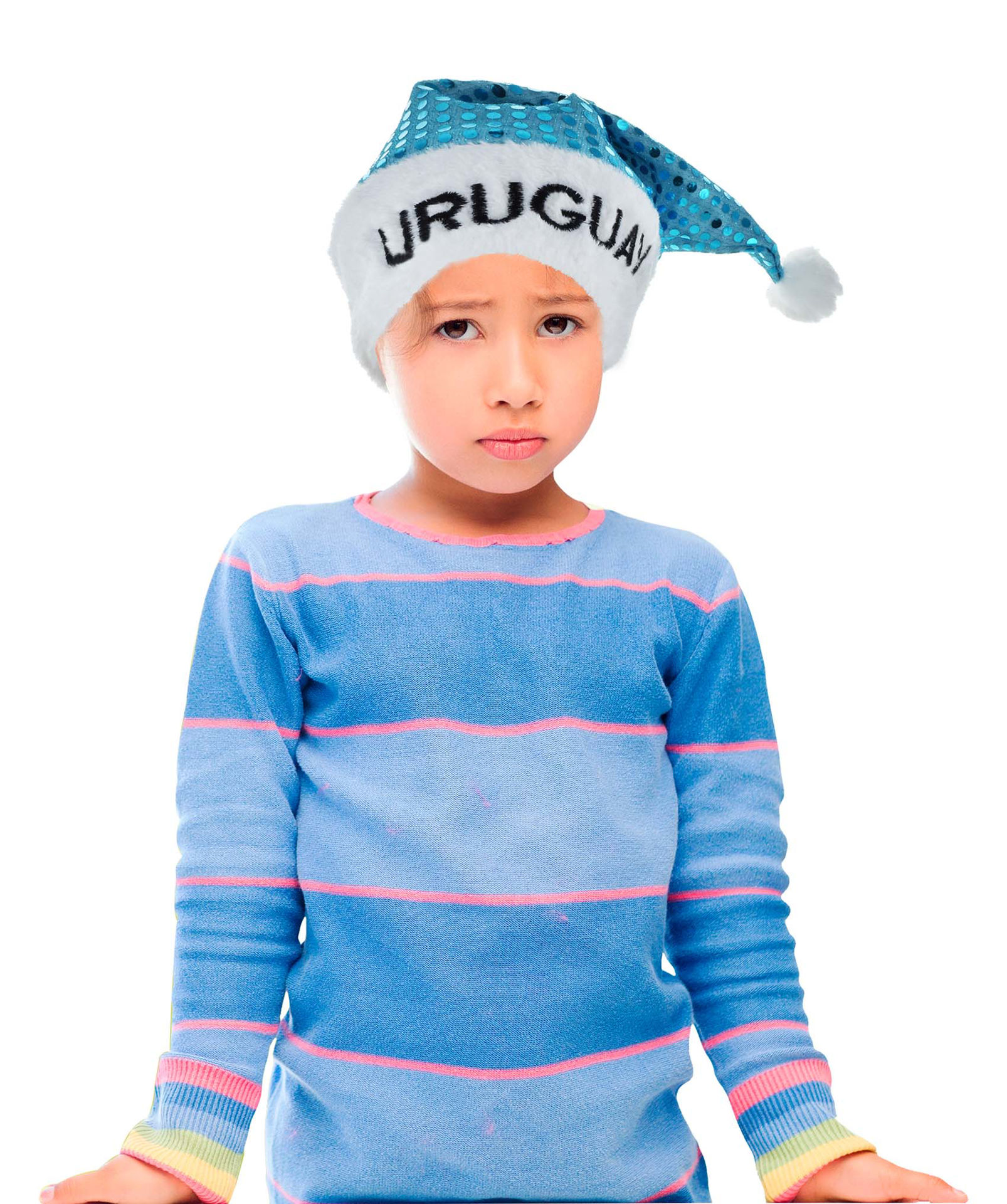 GORRO SANTA URUGUAY CELESTE C/LENTEJUELAS 40X30CM 18602 Q144 M12/6