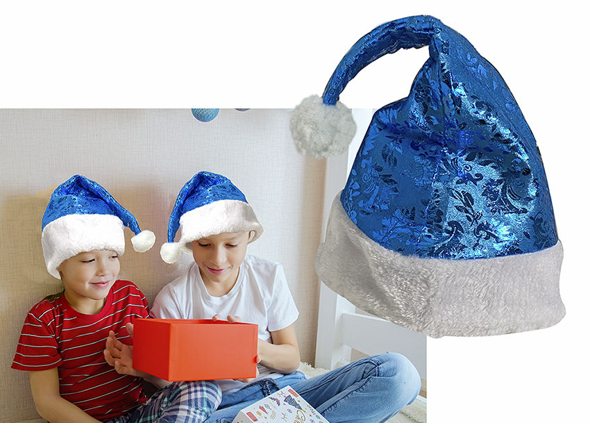 GORRO SANTA CELESTE ESTAMPADO BRILLOSO AZUL 28X40CM 28639 Q144 M12