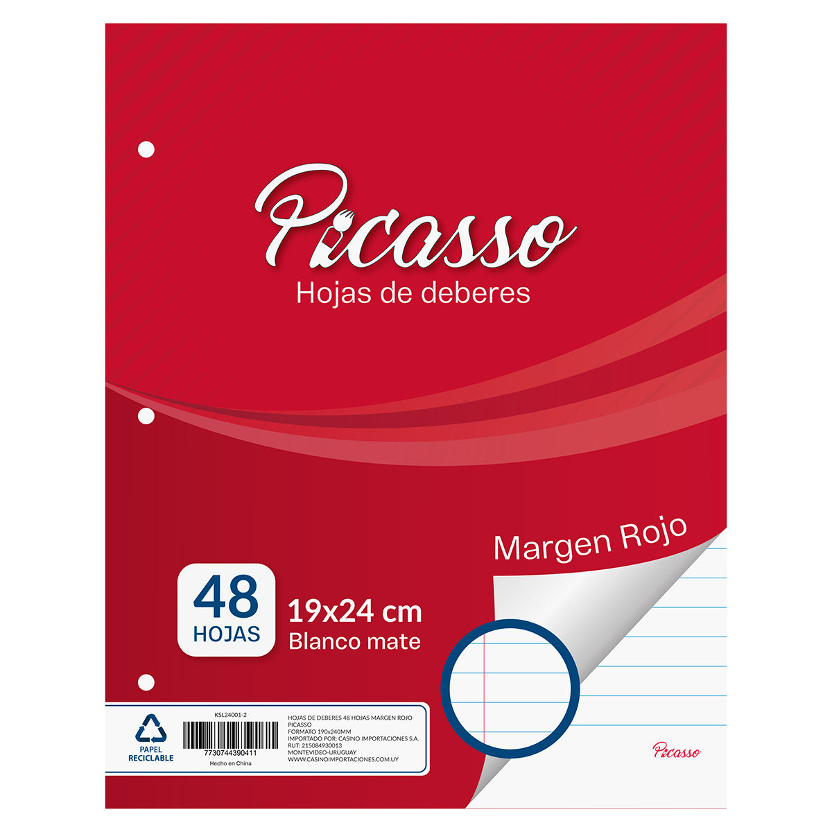 HOJAS DE DEBERES X48 PICASSO 19X24CM MARGEN ROJO KSL24001-2