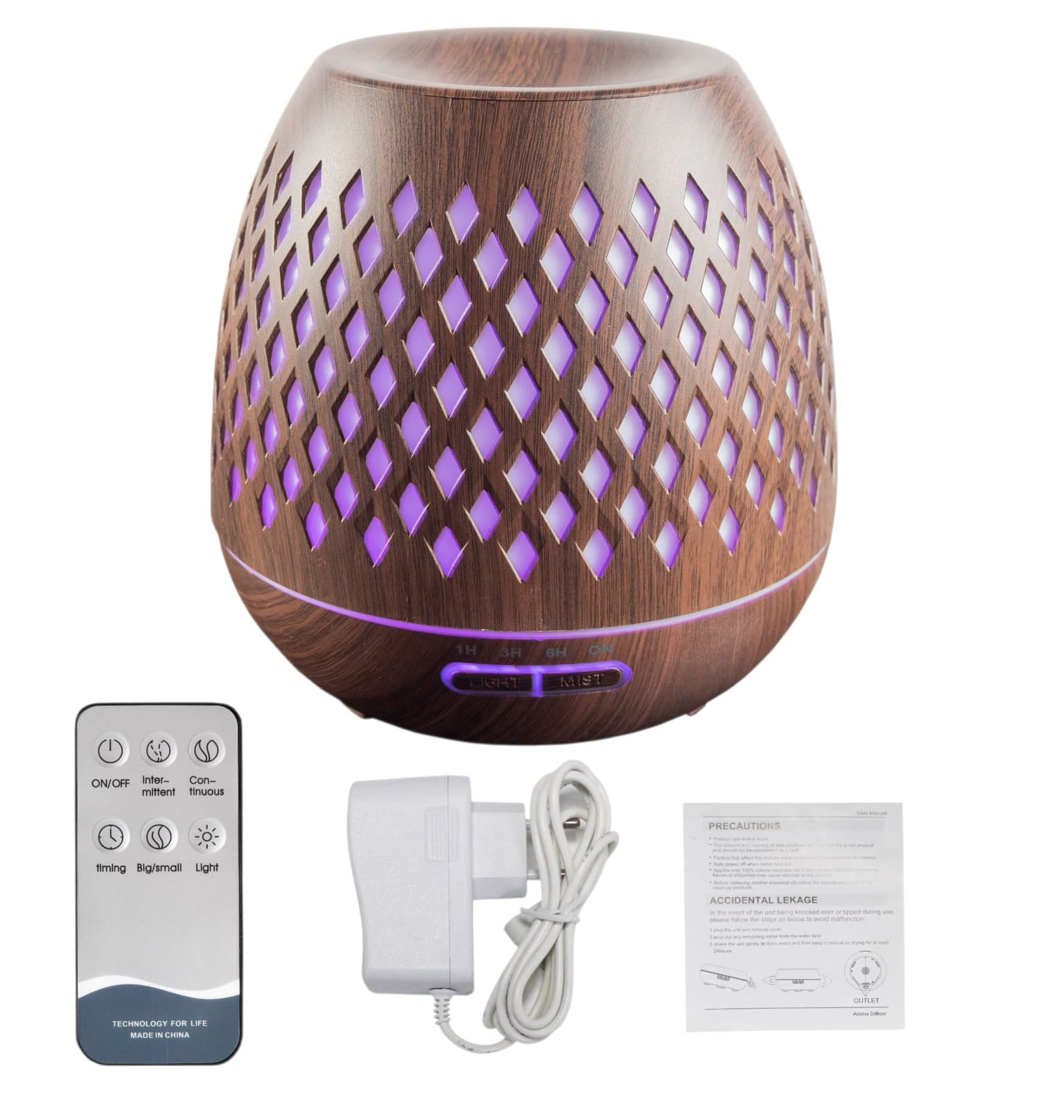 HUMIDIFICADOR DIFUSOR USB LUZ PLASTICO 550ML CONTROL TIMER 16.8X21.8CM 34874 Q18