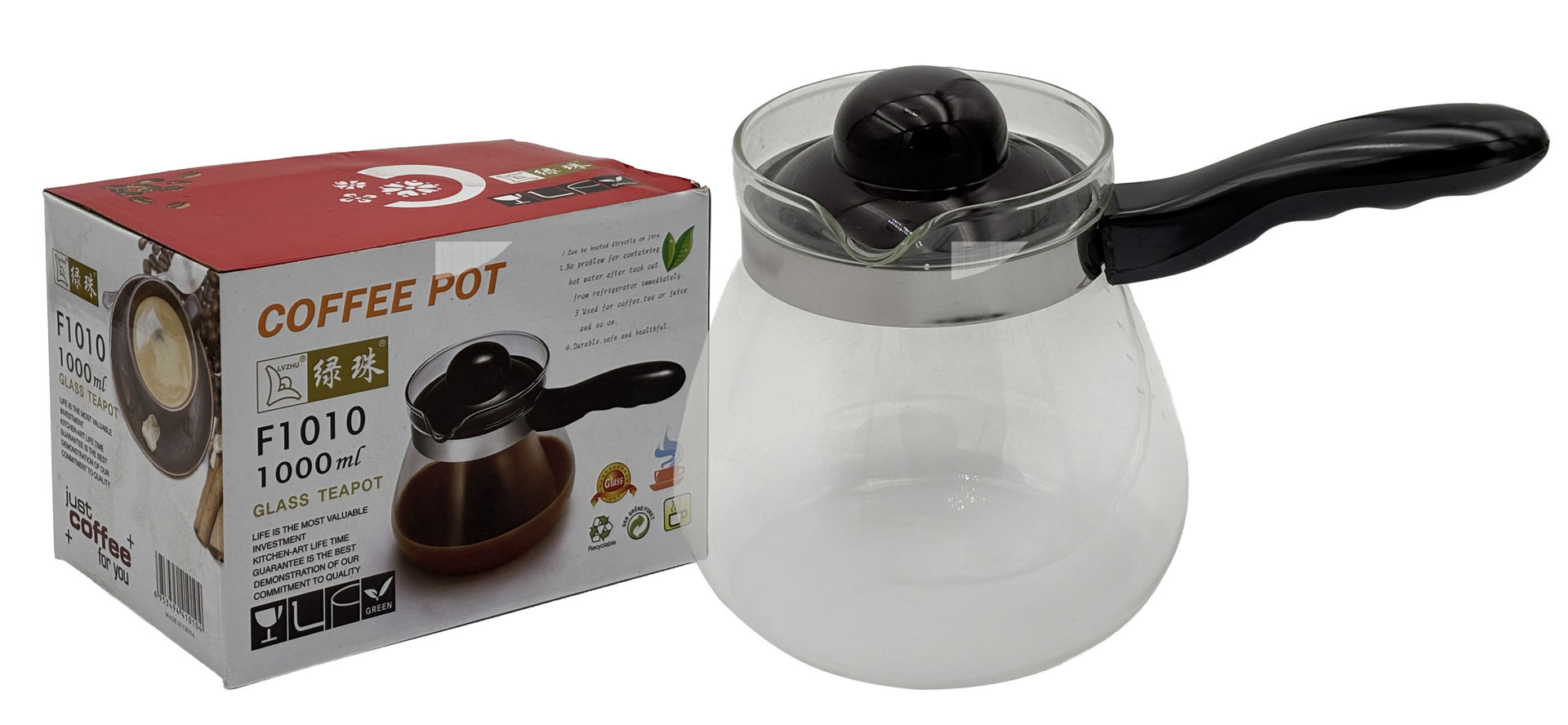 CAFETERA VIDRIO 1LT S/FILTRO C/MANGO PLASTICO 11CM DIAM 13CM ALTO 34757 Q30