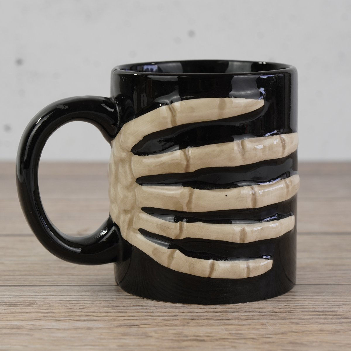 JARRA DESAYUNO CERAMICA COLOR HALLOWEEN APLIQUE ESQUELETO 8X10 300ML 31754 Q16M1