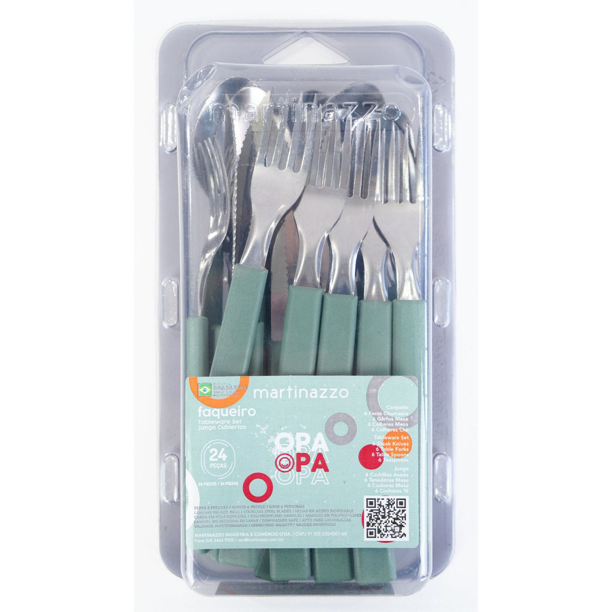 JUEGO CUBIERTOS X24PC LINEA OPA MANGO PLASTICO VERDE MARTINAZZO 65724/40 Q12M12