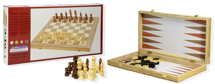 JUEGO DE MESA 3EN1 (AJEDREZ/DAMA/BACKGAMMON) DE MADERA CAJA 14139 Q30 M1