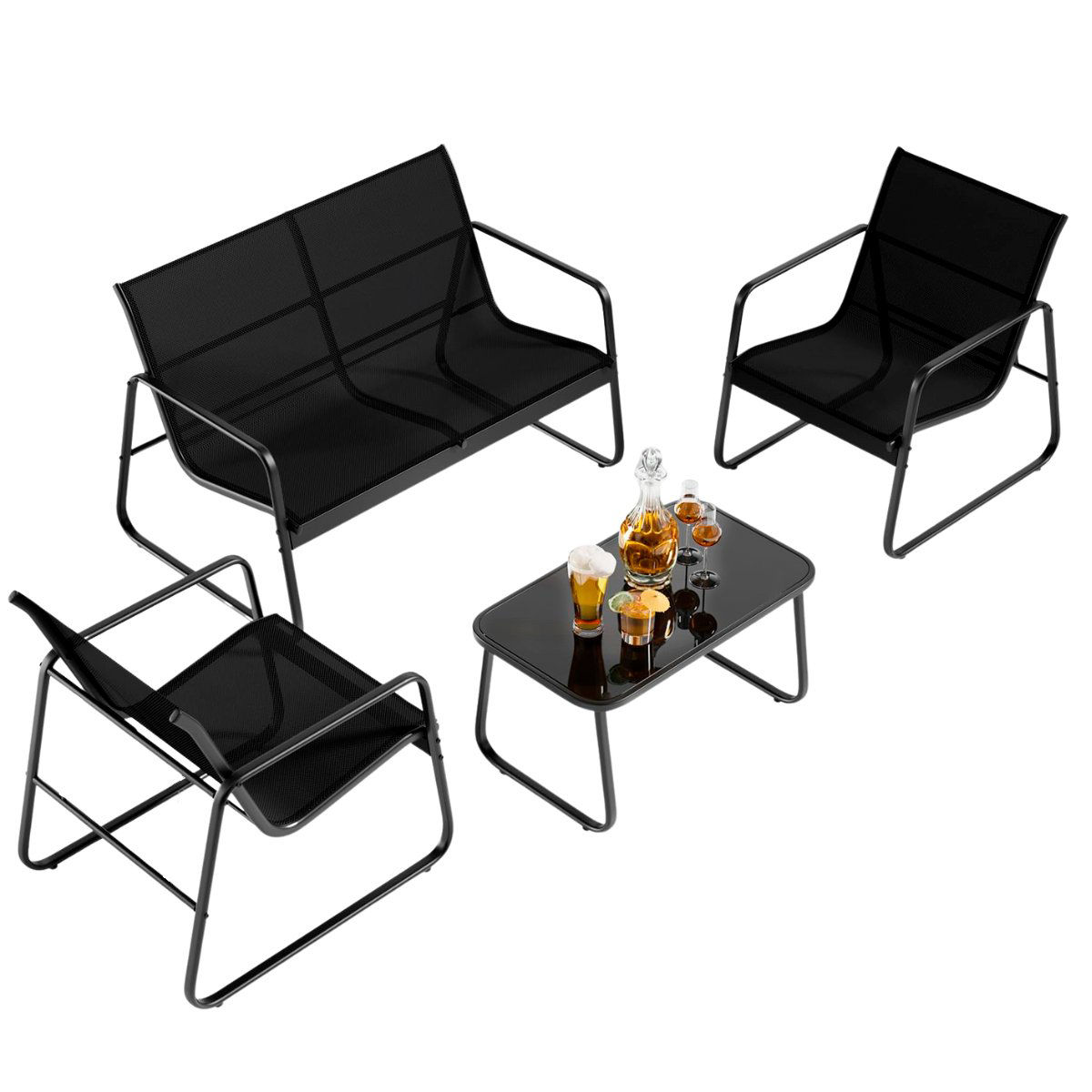 JUEGO LIVING 4PCS METAL Y LONA MESA VIDRIO 34854 Q1