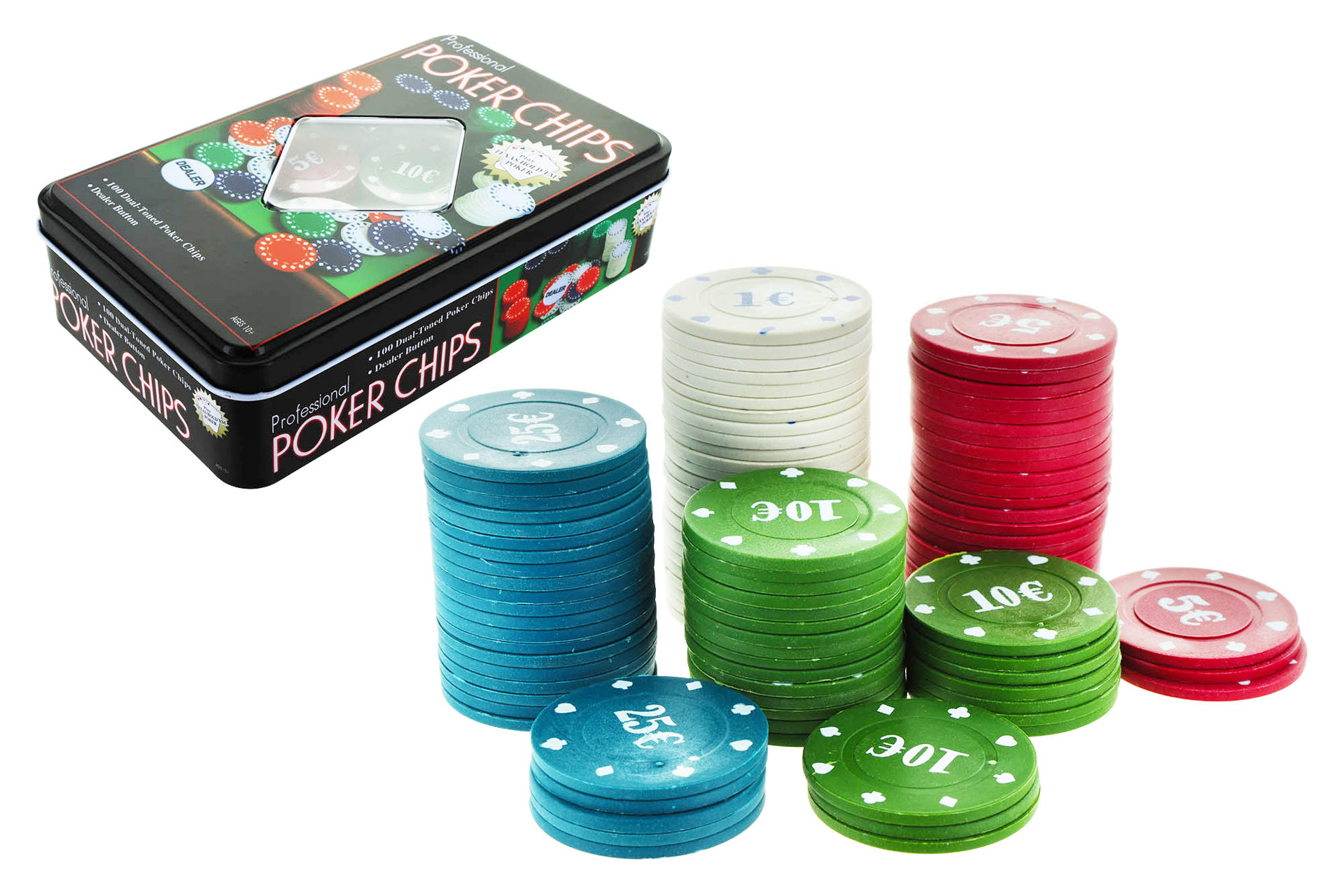 JUEGO POKER 100PCS FICHAS PROFESIONAL LATA NEGRA CHIPS 5195 Q24M1