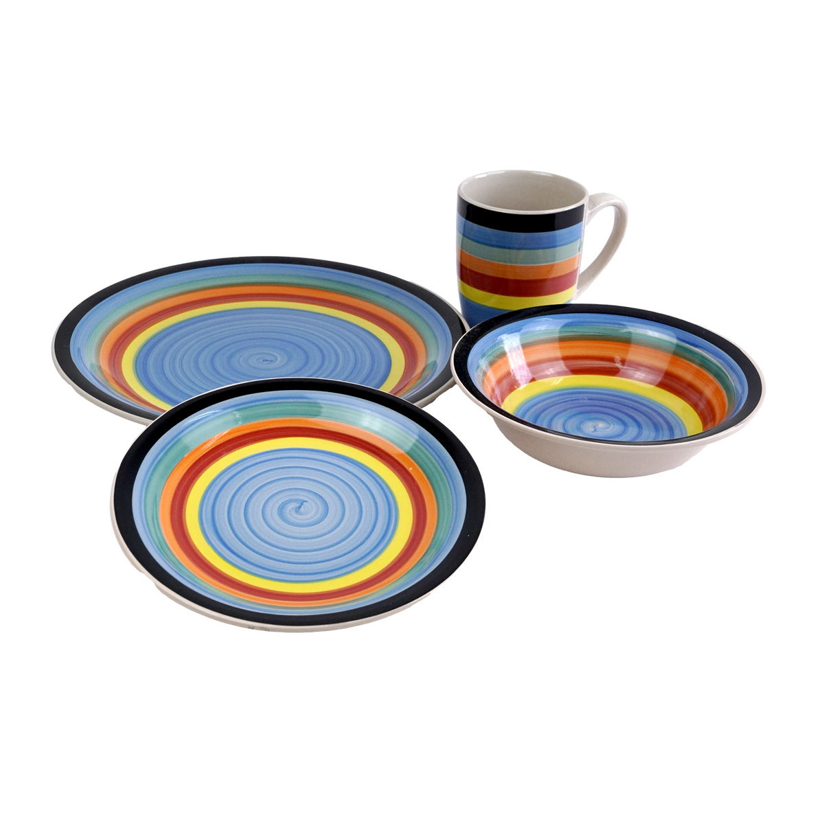 JUEGO VAJILLA 16PCS CERAMICA DISEÑO CIRCULOS AZUL 36560 Q2