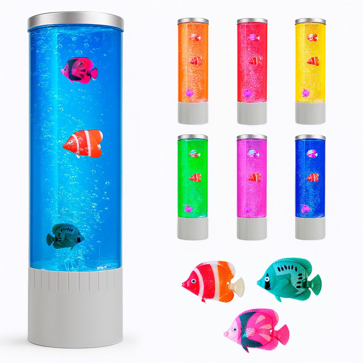 LAMPARA TUBO AGUA CON 3 PECES 8.5CM DIAM 27CM ALTO USB 34873 Q24