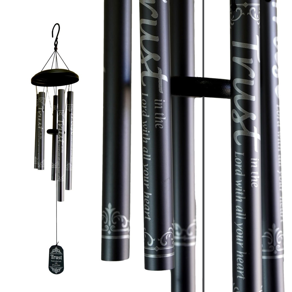LLAMADOR ANGELES 104CM METAL NEGRO Y GRIS DISEÑO LETRAS TRUST 36070 Q6M1