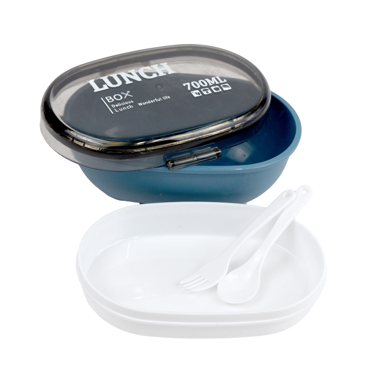 LUNCHERA PLASTICA OVAL C/REPARTICIONES Y CUBIERTOS 700ML 18X12X9CM 19148 Q56 M1