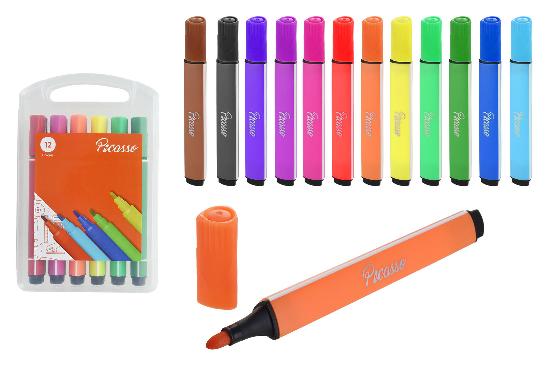 MARCADORES X12PCS GRUESO PICASSO VALIJA PLASTICO TRANSPARENTE 21667 Q96 M24