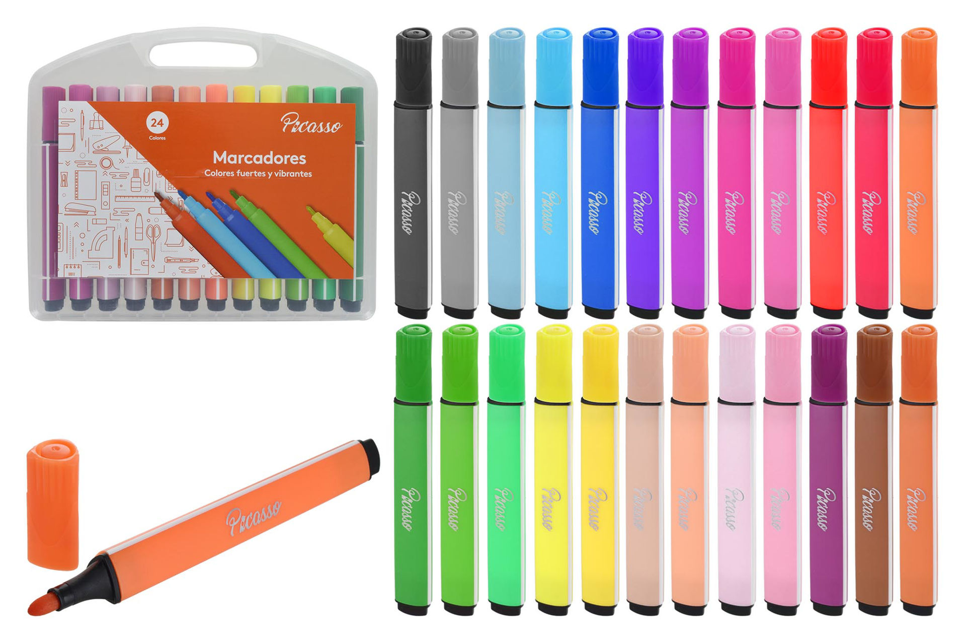 MARCADORES X24PCS GRUESO PICASSO VALIJA PLASTICO TRANSPARENTE 21668 Q48 M12