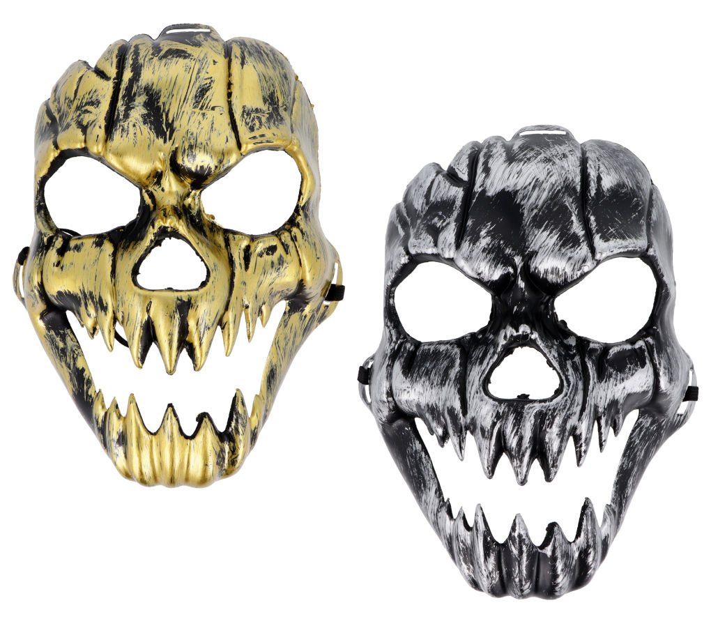 MASCARA CALAVERA DEMONIACA PLASTICO DORA/PLATEA C/NEGRO 23.5X17.5X9CM 29893 Q240