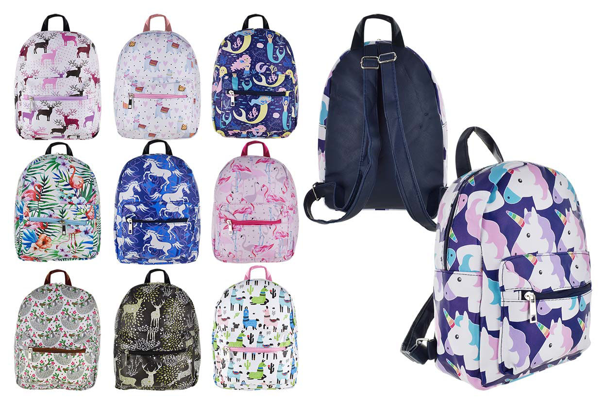MOCHILA ESTAMPADA DISEÑO ANIMALES C/BOLSILLO 21X28X10CM 22672 Q48M4