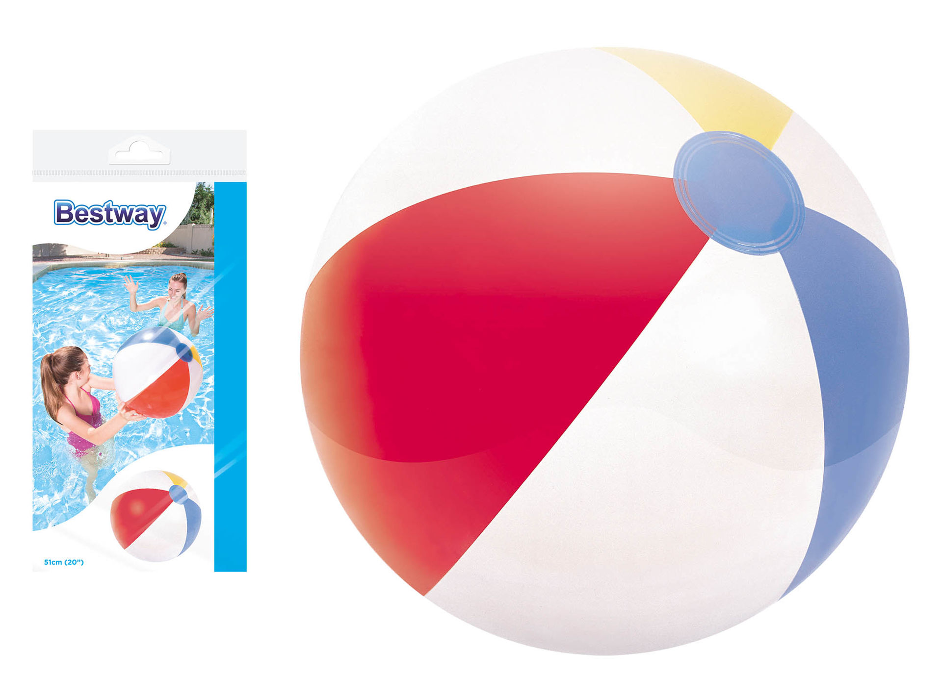 PELOTA INFLABLE PLAYA 51CM LISA C/GAJOS COLORES +2 AÑOS BESTWAY 31021 Q36