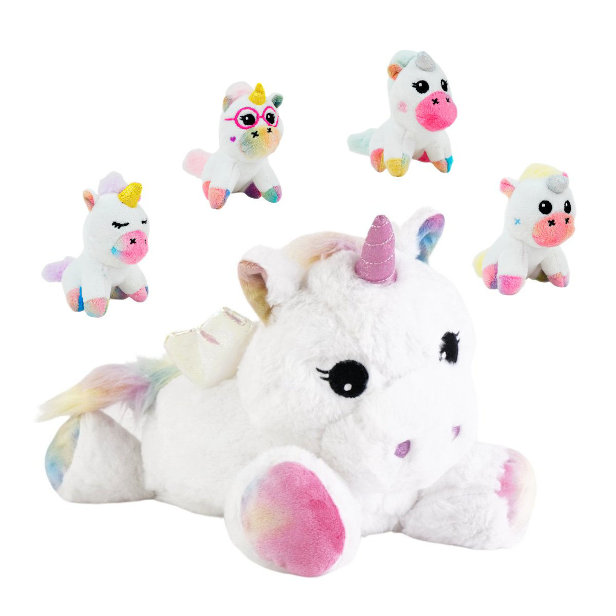 PELUCHE UNICORNIO ACOSTADO C/ 4 HIJOS C/ALAS 30X15X19CM 280GR 33380 Q50