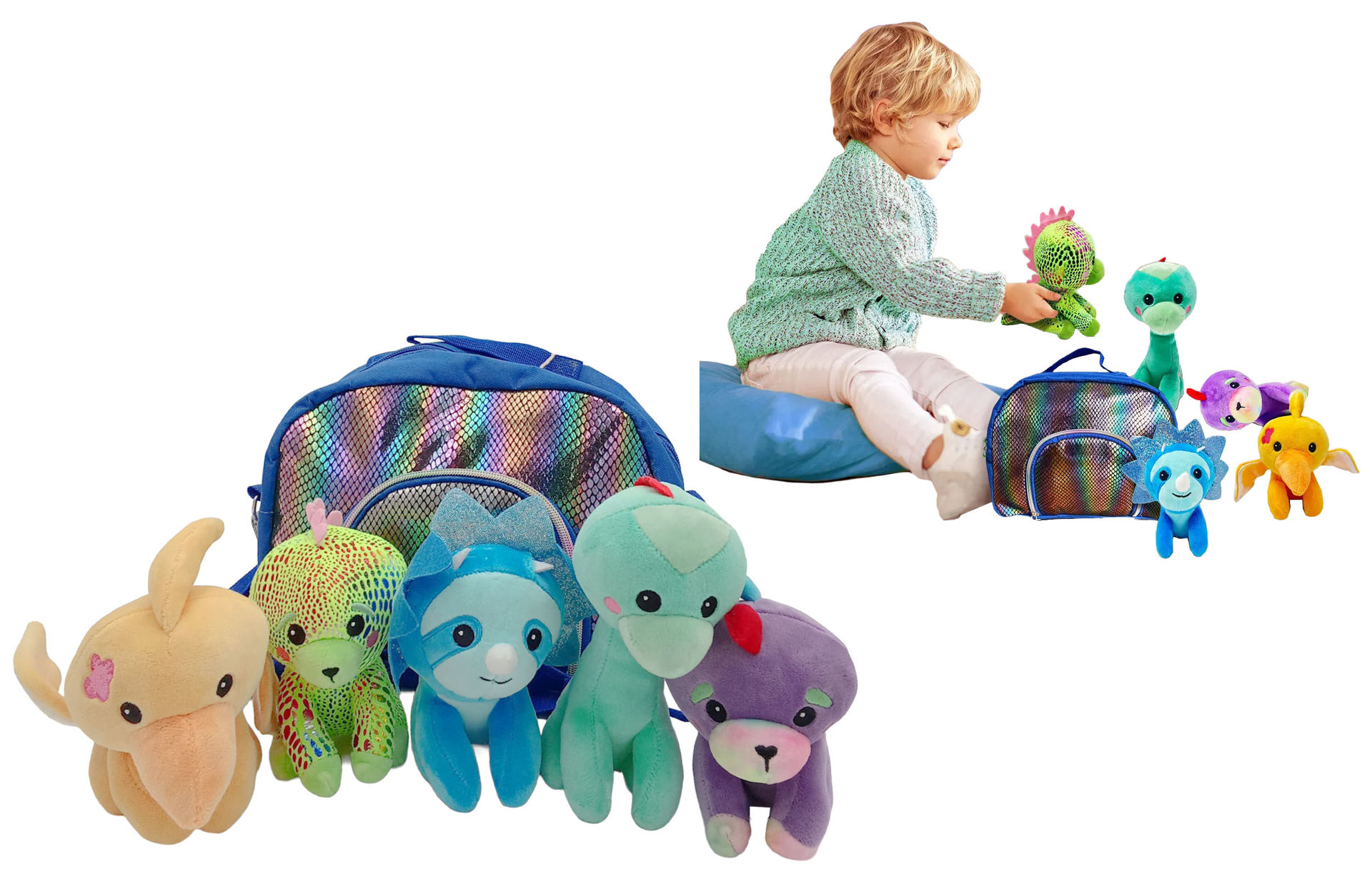PELUCHE SET X5PCS + BOLSO CONTENEDOR 28X21X9CM TORNASOLADO C/ASA 34344 Q42