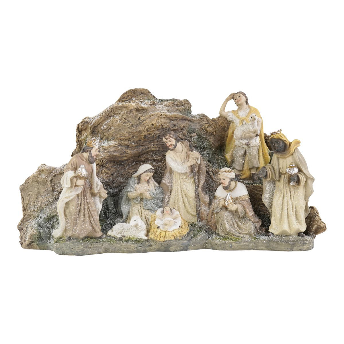 PESEBRE CERAMICA 8 FIGURAS C/CAVERNA ROCA 30X18CM 35197 Q6